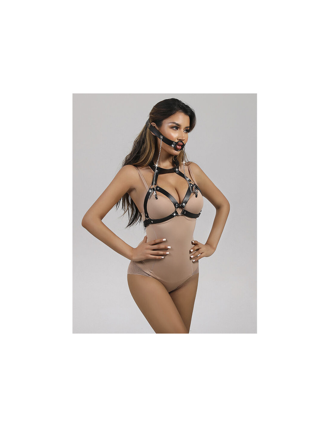 SUBBLIME - 953720 PINZAS PARA EL PECHO CON CORREA DE CUERO BONDAGE NEGRO TALLA ÚNICA