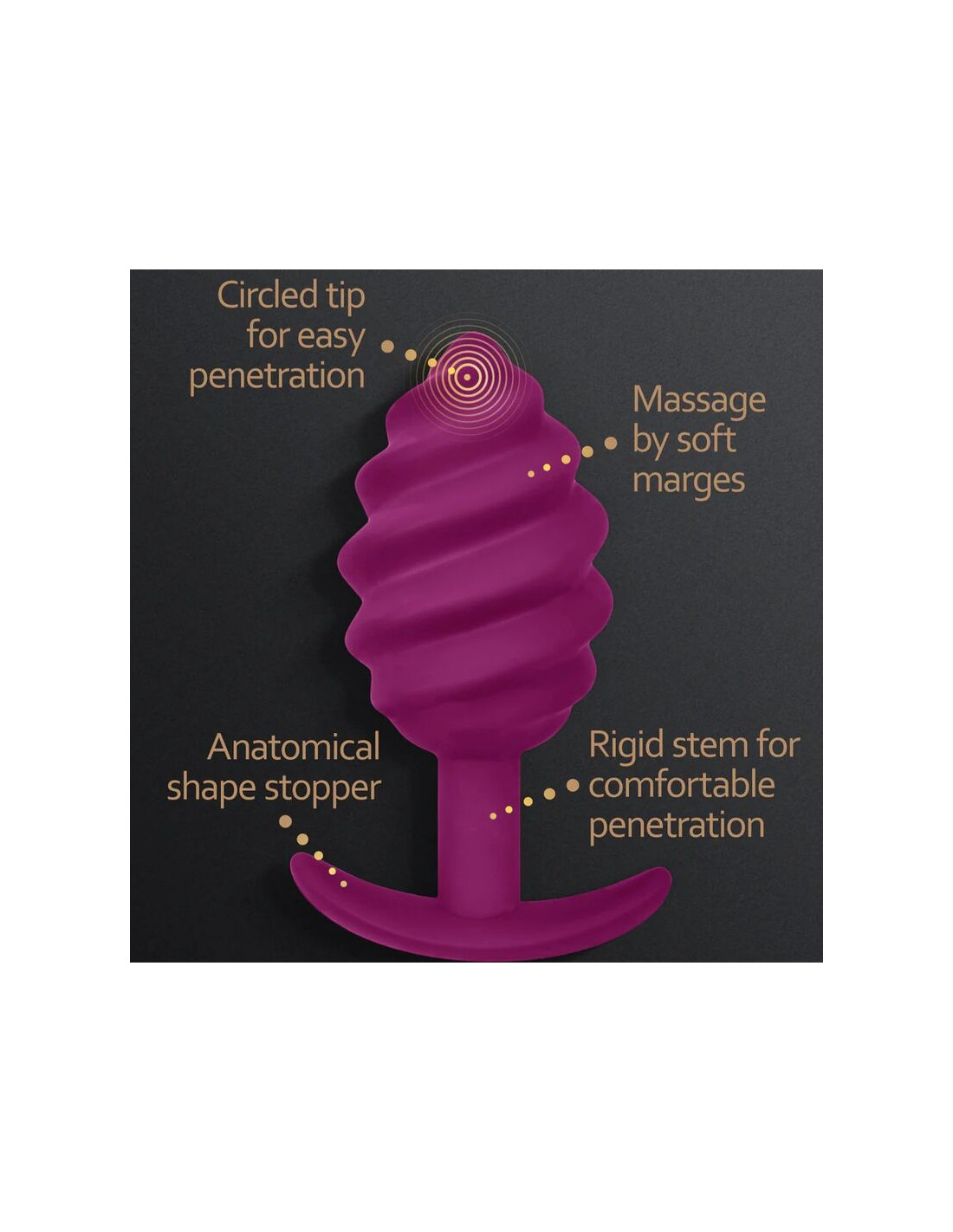 Gira y entra fácilmente sin esfuerzos adicionales. Al estar adentro, debido a su forma acanalada, Gplug Twist masajea con cada costilla, brindando placer.