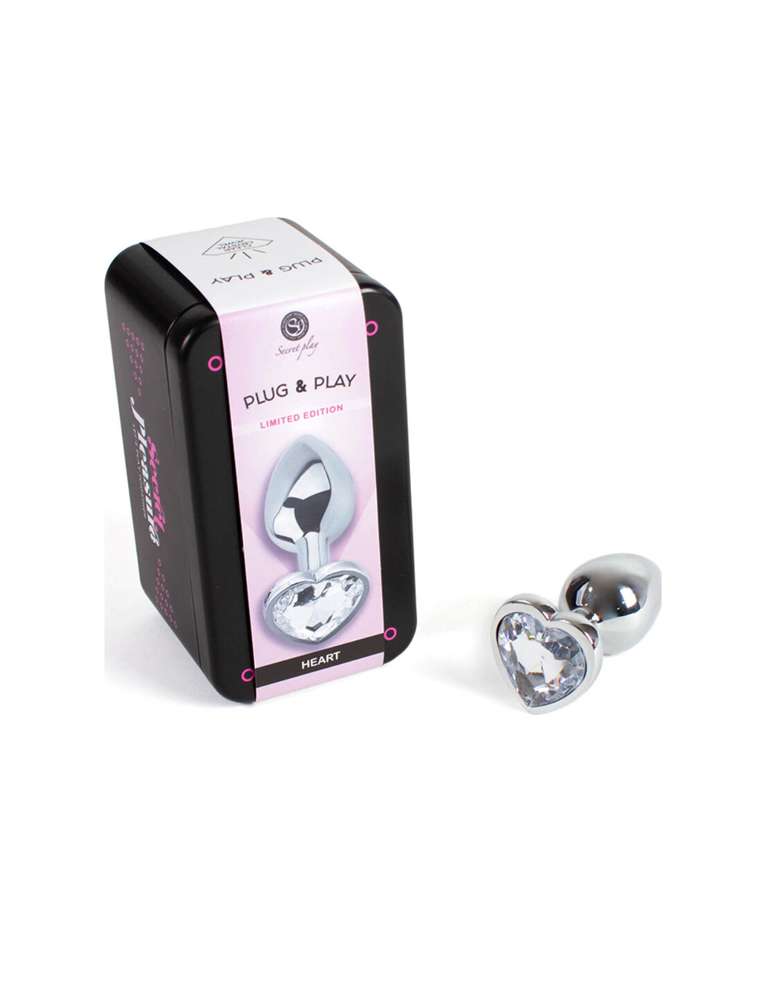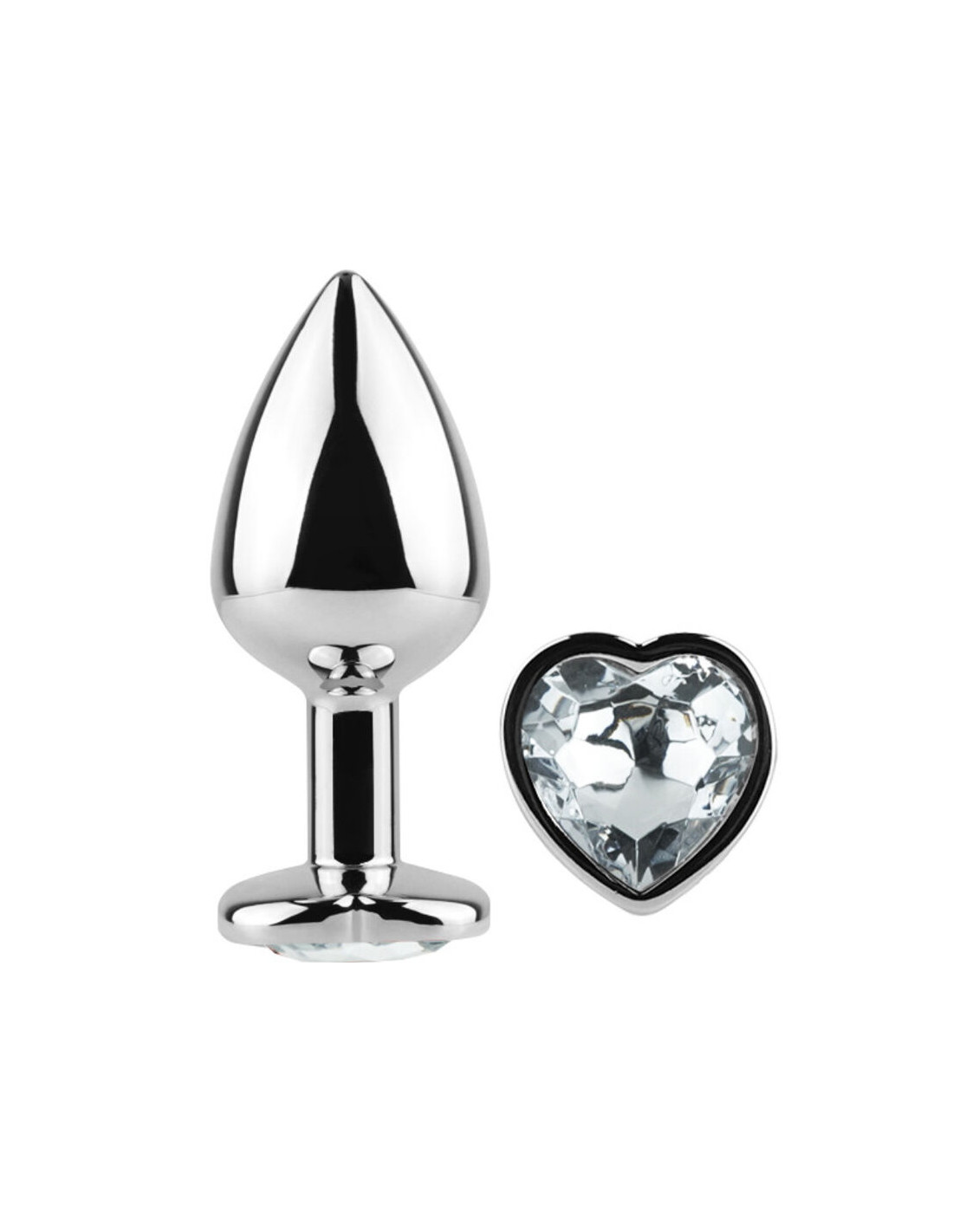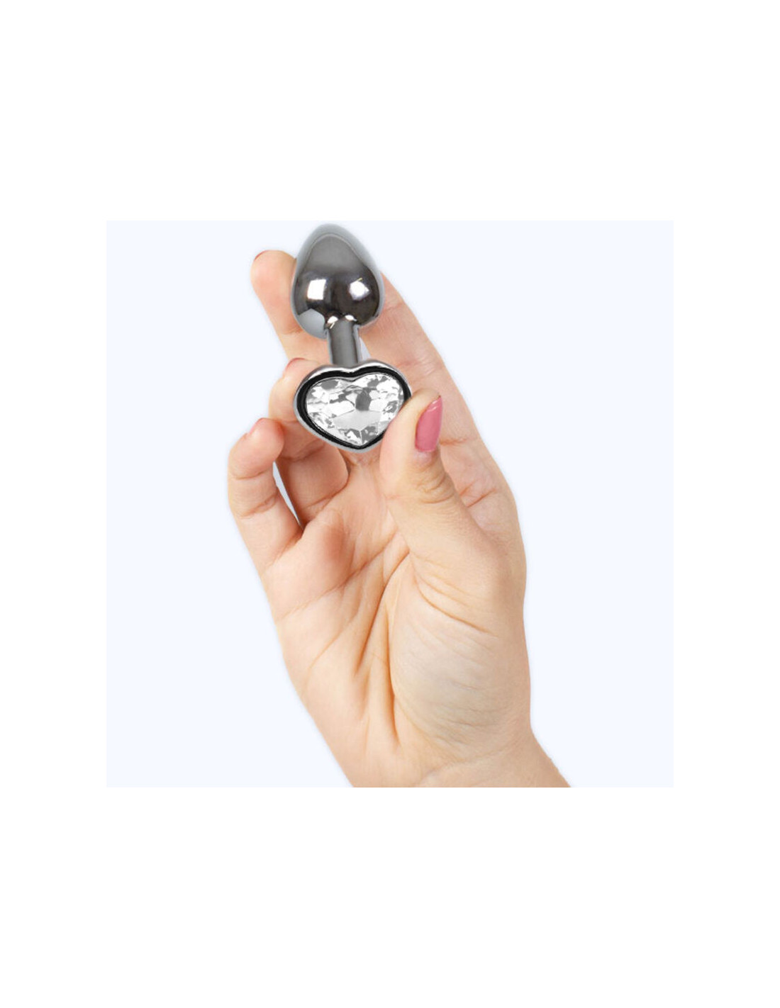 SECRETPLAY - METAL BUTT PLUG CORAZÓN TRANSPARENTE TALLA S 7 CM