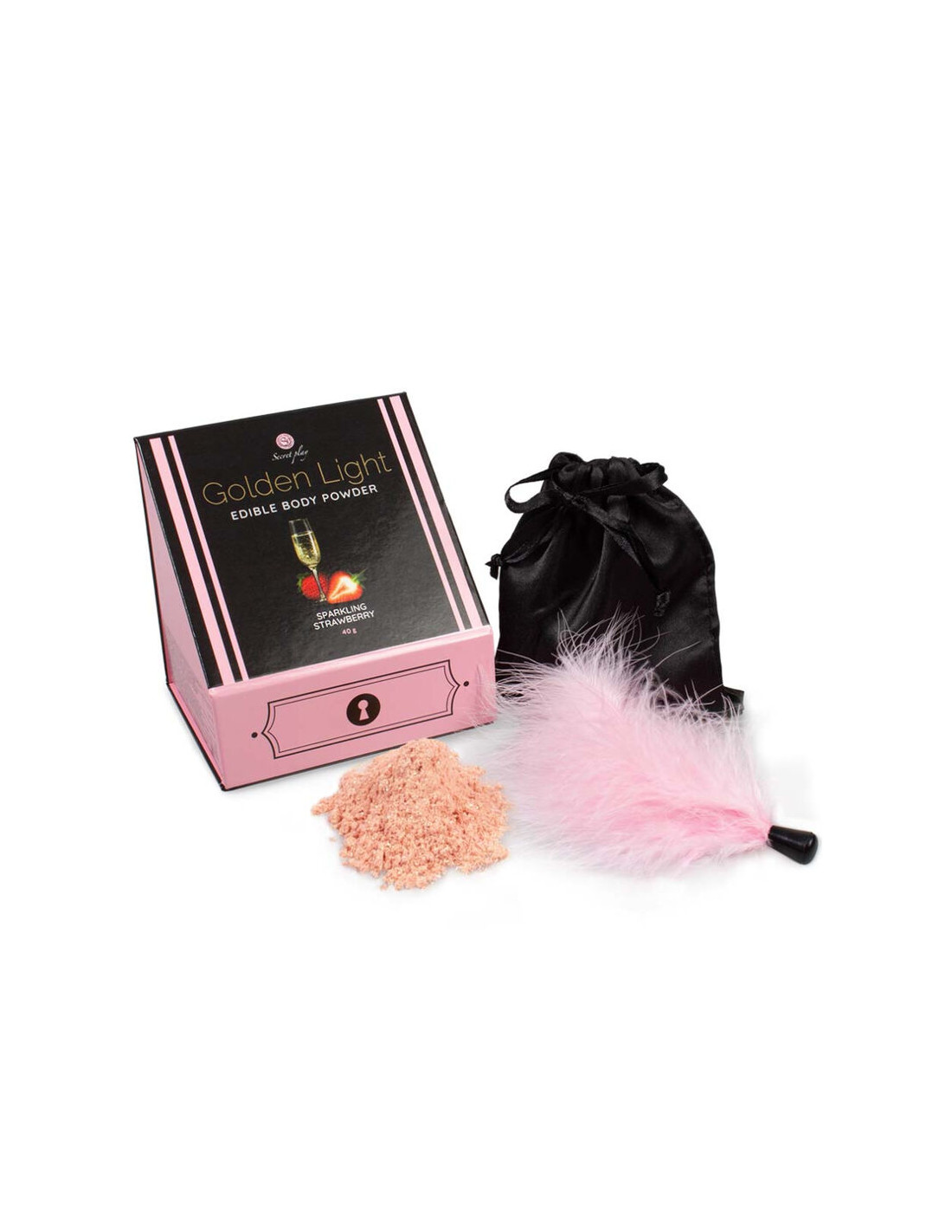 SECRETPLAY - GOLDEN LIGHT KIT POLVOS COMESTIBLES Y PLUMA FRESAS & CAVA