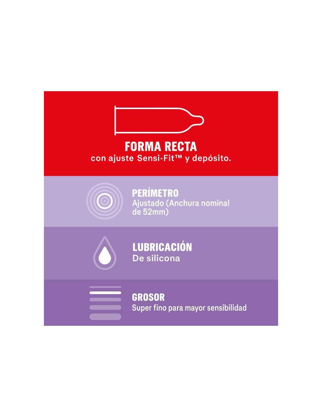Durex Sensitivo Contacto Total es uno de nuestros preservativos más finos con ajuste Sensi-Fit para una mayor sensibilidad diseñado para mejorar la sensibilidad entre tú y tu pareja. Son preservativos ultra finos para ofrecerte mayor sensibilidad y aumentar el placer.