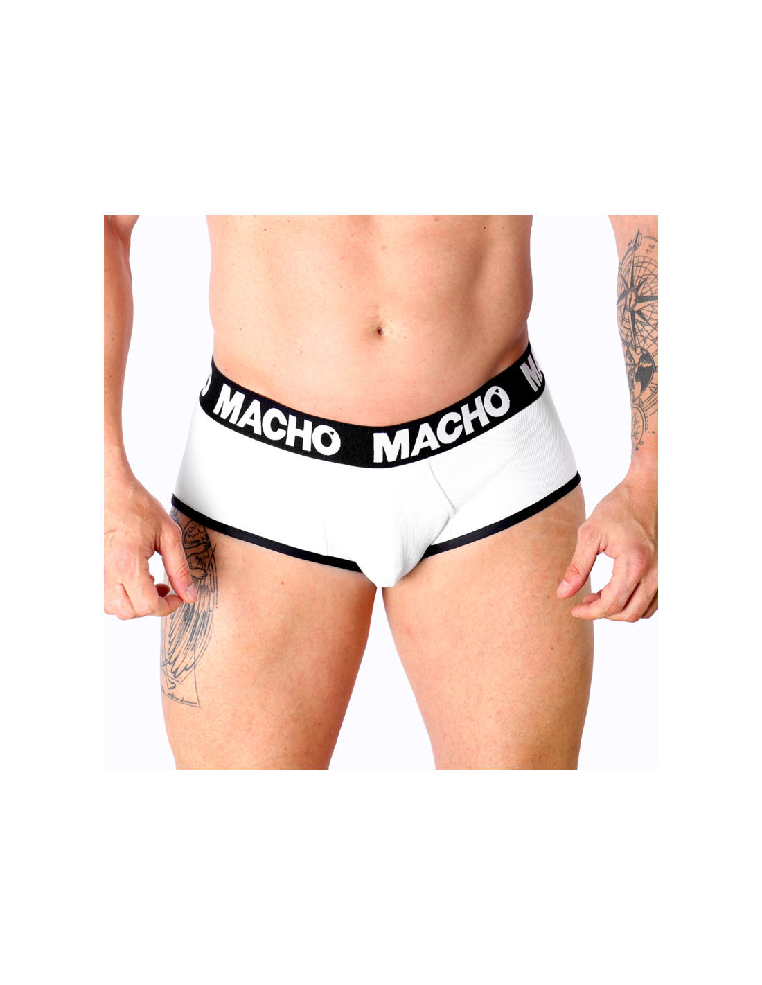 SLIP MACHO BLANCO - Slip de corte clásico, sin perder la comodidad y con una excelente transpirabilidad por su tejido de lycra adaptable. Este material de excelente calidad se adapta de la manera más suave posible al cuerpo y tiene una copa de realce en la zona de los genitales, para realzar aquello que llevas en tu interior.