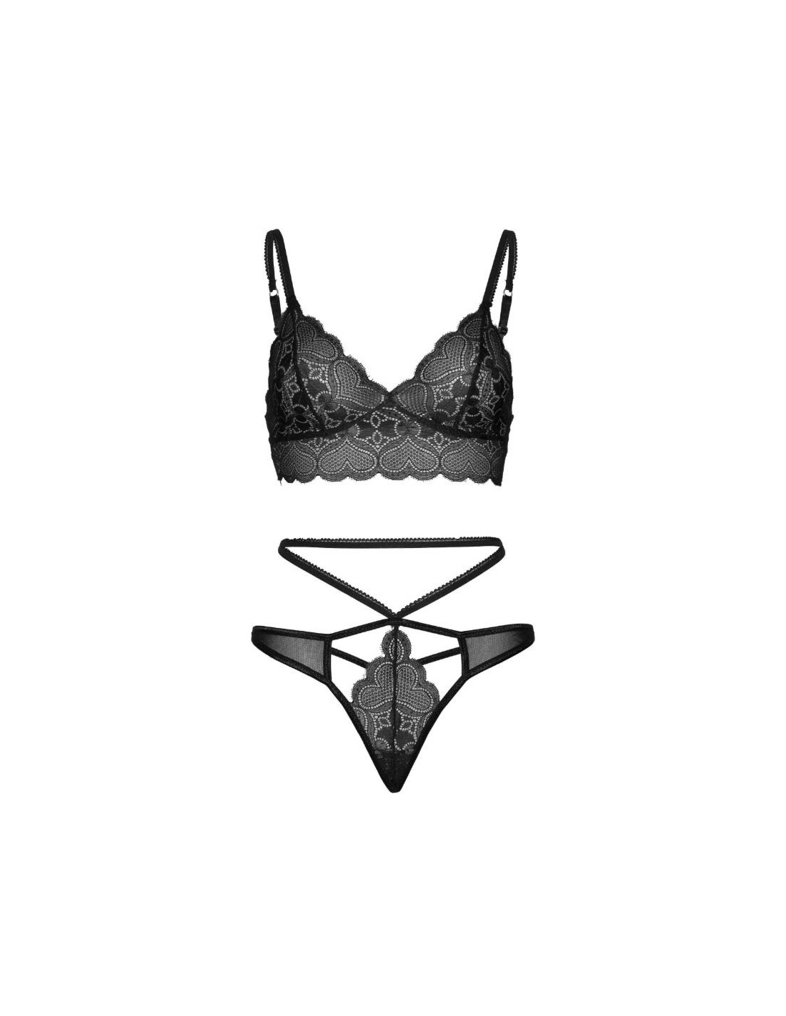 2 Pzs Bralette de encaje y tanga con recorte a juego fabricado por la prestigiosa marca de lencería Leg Avenue.