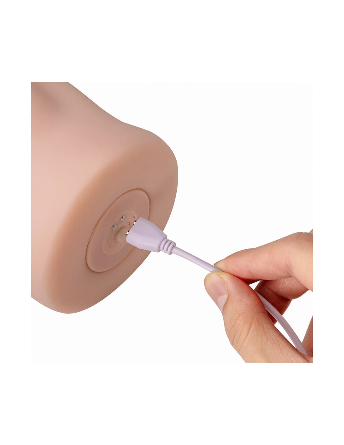 - Textura interna estimulante: El túnel interno está diseñado con estrías, nódulos y cámaras de succión que aumentan la fricción y la sensación de presión alrededor del pene. Las vibraciones se distribuyen a lo largo del canal, creando una experiencia aún más realista y satisfactoria.