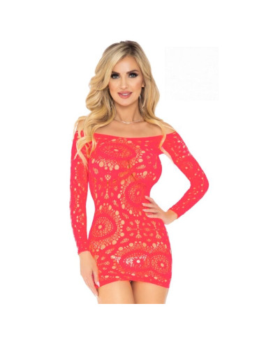 LEG AVENUE - MINI VESTIDO DE ENCAJES MANGA LARGA ROJO TALLA ÚNICA