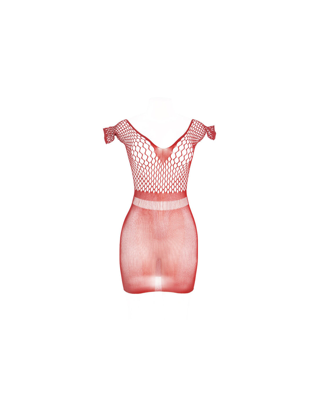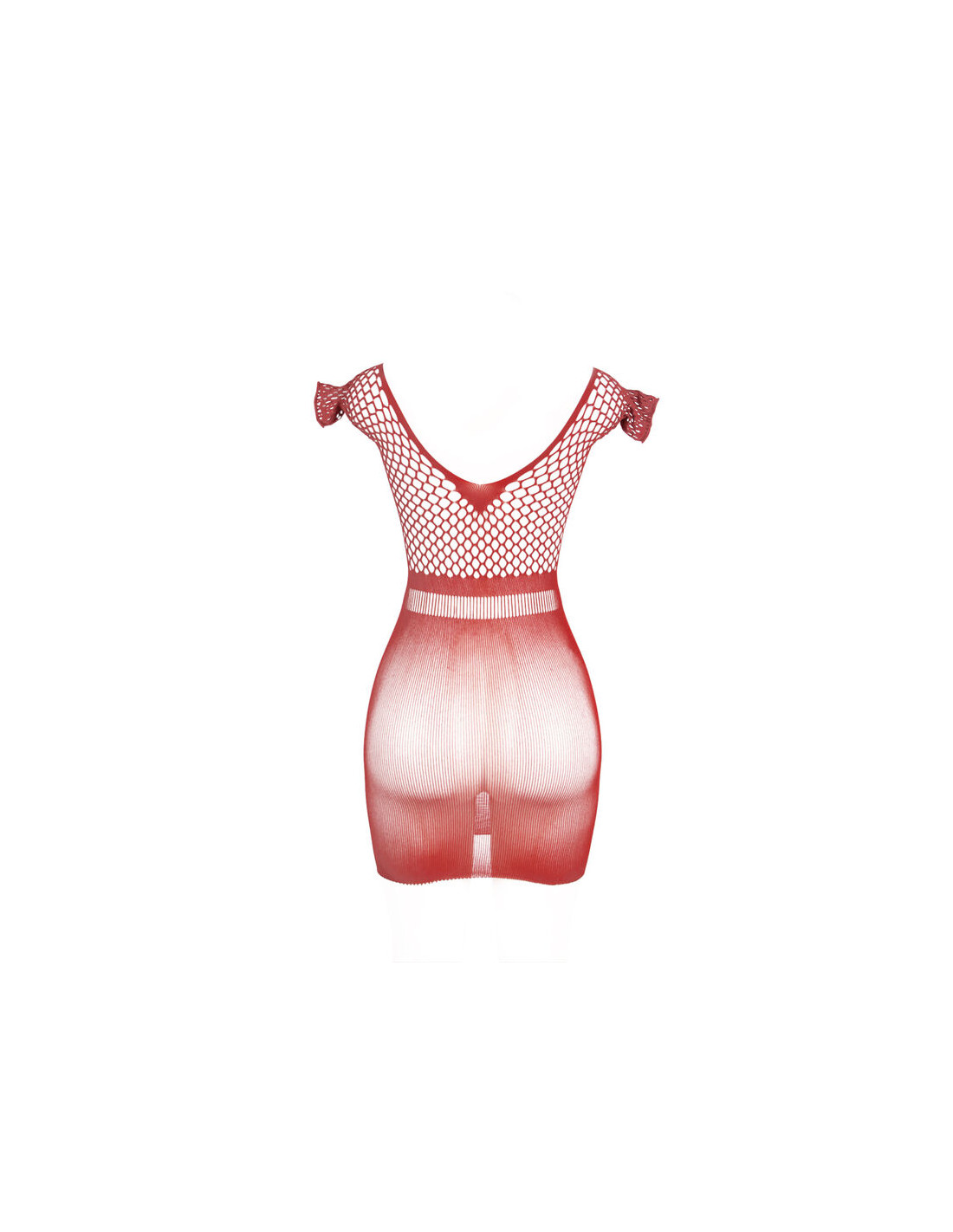 - Estilo: Mini vestido camisero en rojo con diseño calado.
