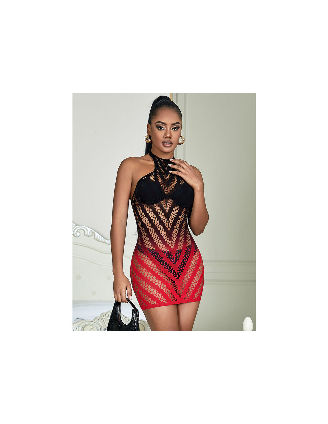 - Patrón: Degradado en negro y rojo.