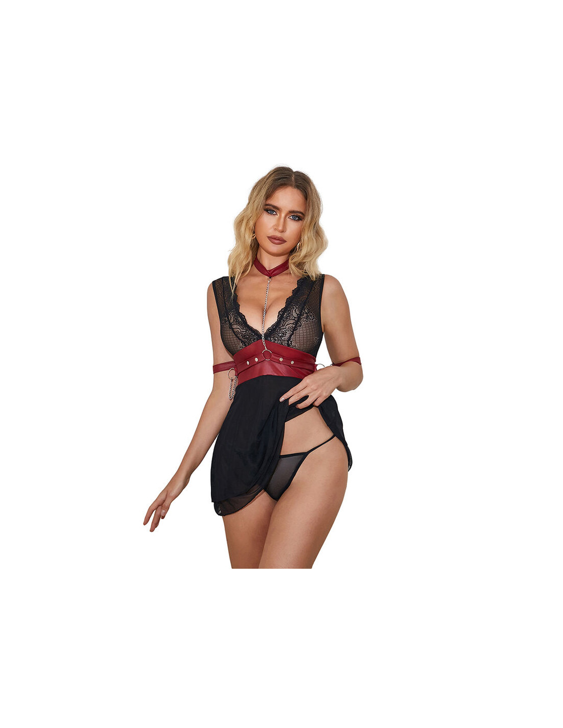 SUBBLIME - 954420 VESTIDO BONDAGE DE ENCAJE NEGRO S/M
