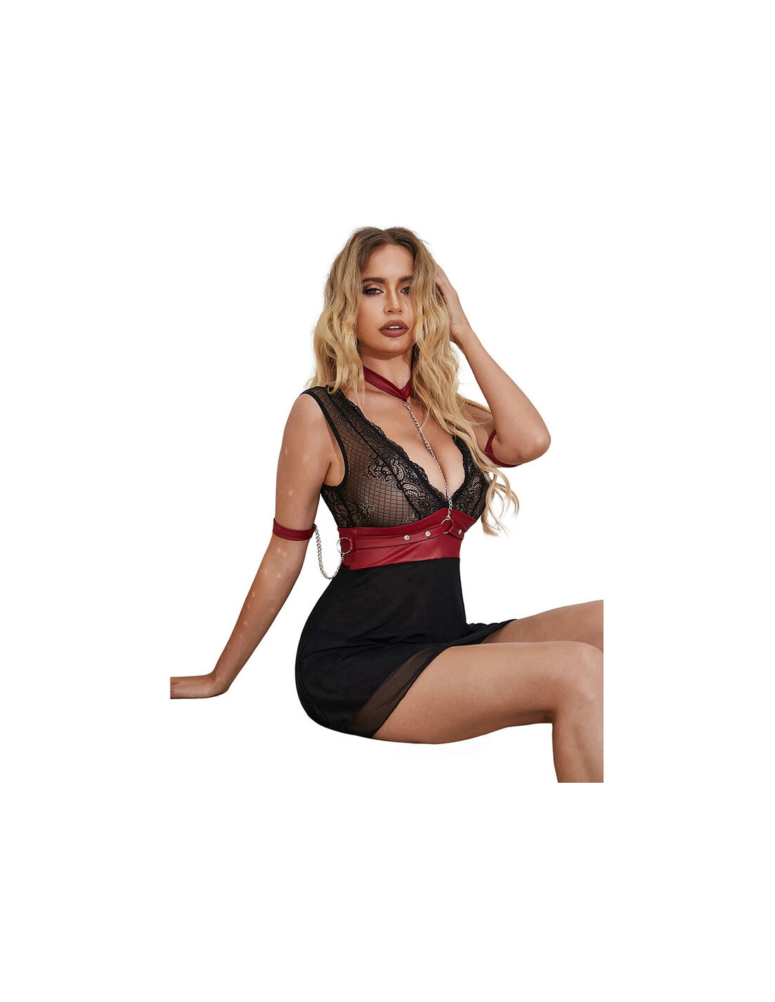 SUBBLIME 954420 VESTIDO BONDAGE DE ENCAJE NEGRO S M