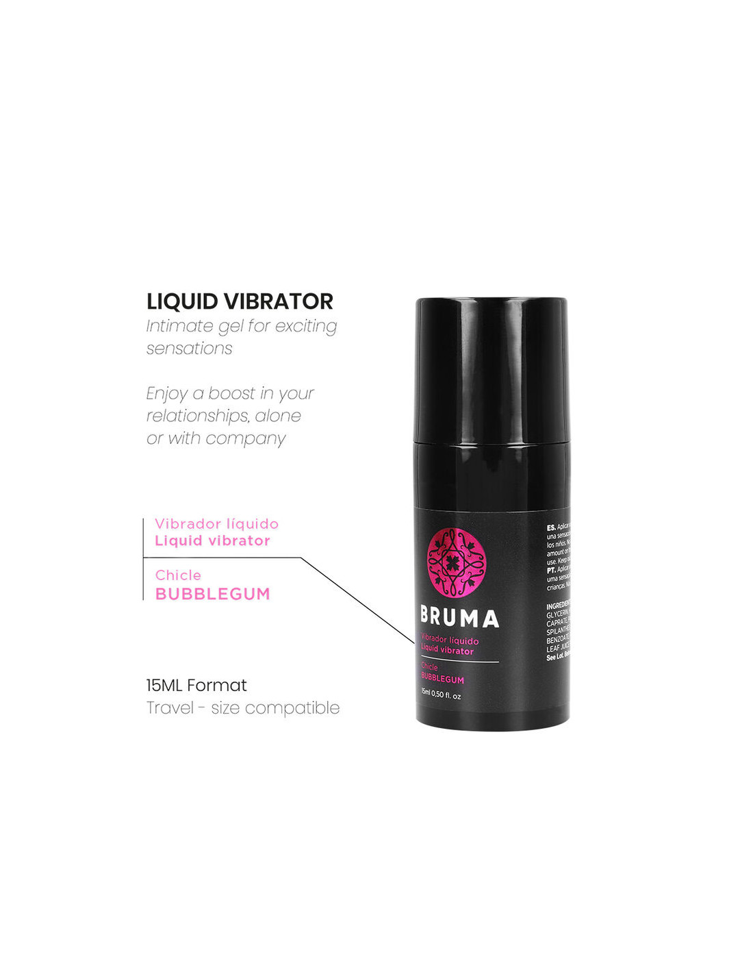 El vibrador líquido sabor chicle de la marca BRUMA es un gel íntimo diseñado para proporcionar sensaciones excitantes y placenteras durante tus momentos más íntimos. Este producto innovador está pensado para darte un impulso extra en tus relaciones, ya sea en solitario o en compañía, haciendo que cada experiencia sea única y memorable.