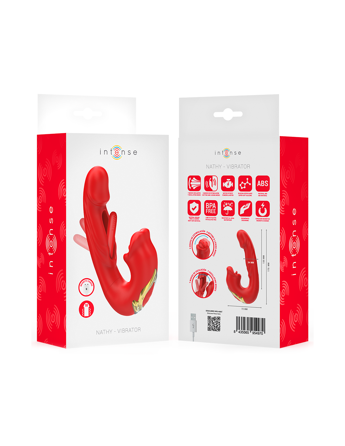INTENSE - NATHY VIBRADOR DOBLE CON BOCA ESTIMULADORA MULTIFUNCIÓN ROJO