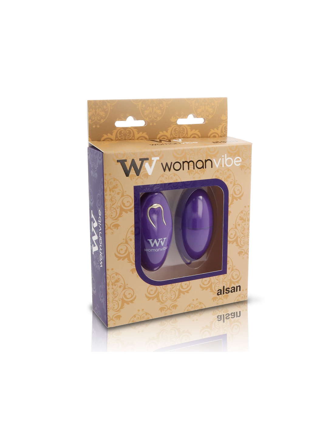 Womanvibe Alsan huevo vibrador control remoto, perfectamente diseñado, contiene un poderoso motor de nueva generación que vibra hasta 12000 rpm. El motor tiene 12 diferentes patrones de vibración única de ondas y pulsaciones que pueden ser cambiadas a través de su elegante control remoto, que funciona hasta a 20 metros (65 pies de distancia). También posee una capa suave, lisa y sedosa que le da una sensación única.