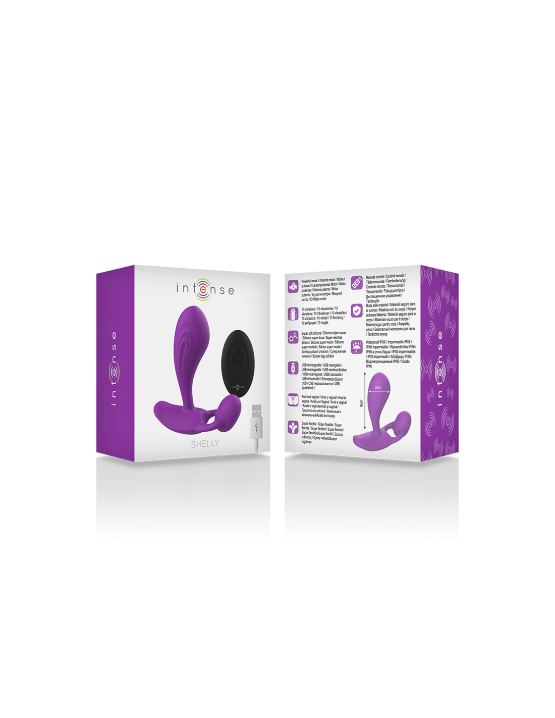 INTENSE - SHELLY DUO ANAL-PERINEO , VAGINAL-CLITORIS REMOTO MORADO