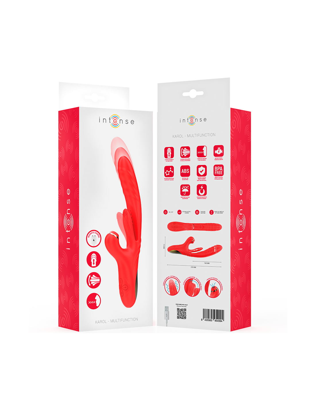 Lleva tu placer al siguiente nivel con KAROL, el vibrador multifuncional que combina empuje, estimulación y succión en un solo dispositivo. Diseñado para quienes buscan una experiencia completa y envolvente, KAROL ofrece sensaciones intensas tanto en la penetración como en la estimulación externa, brindando un placer profundo e inigualable.