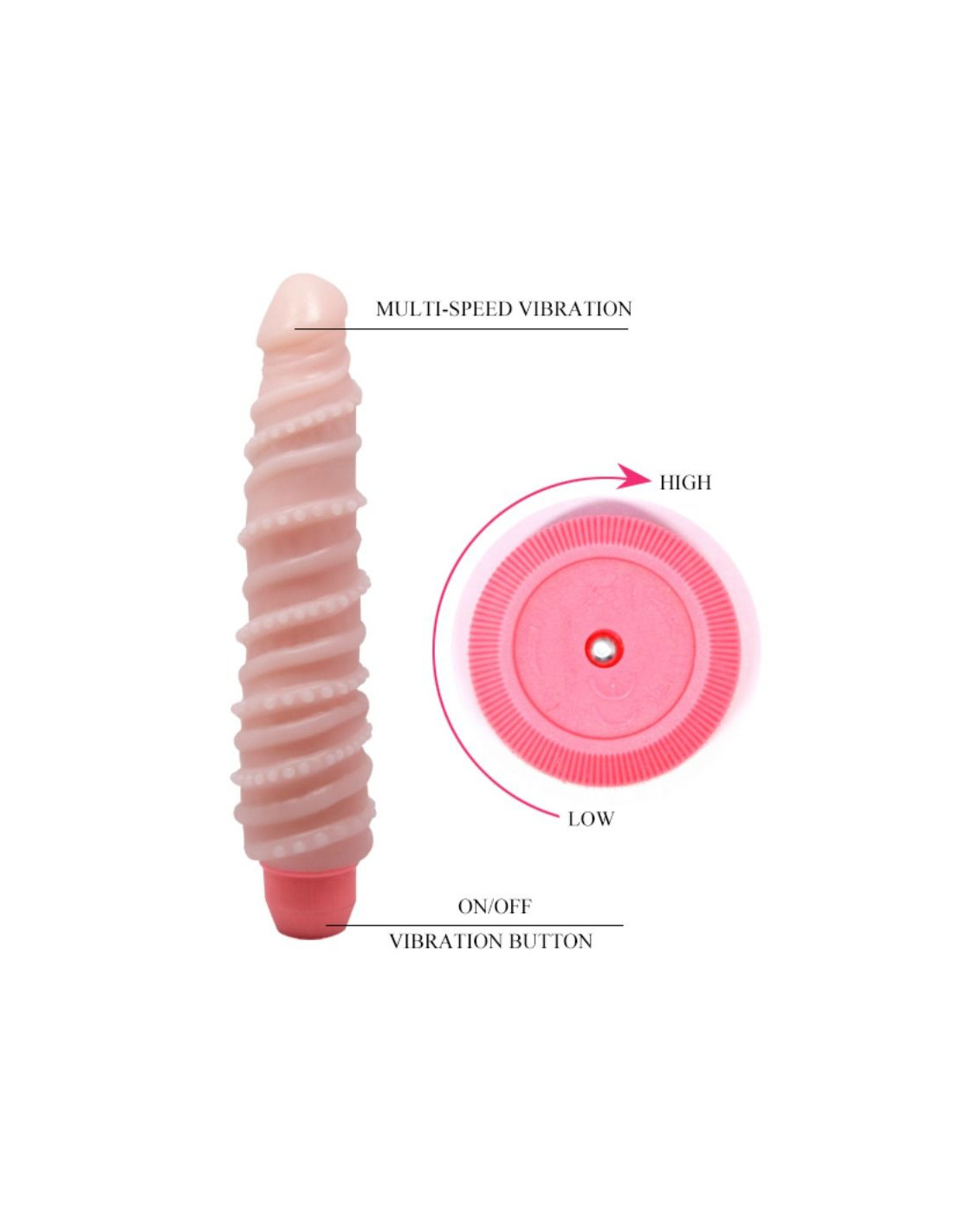 Este consolador dildo es suave, texturado, de color carne para una increíble estimulación que te dejará sin aliento. Este consolador del cuál tanto se habla tiene un glande perfectamente redondeado con vibración múltivelocidad y venas en el eje para potenciar su realismo.