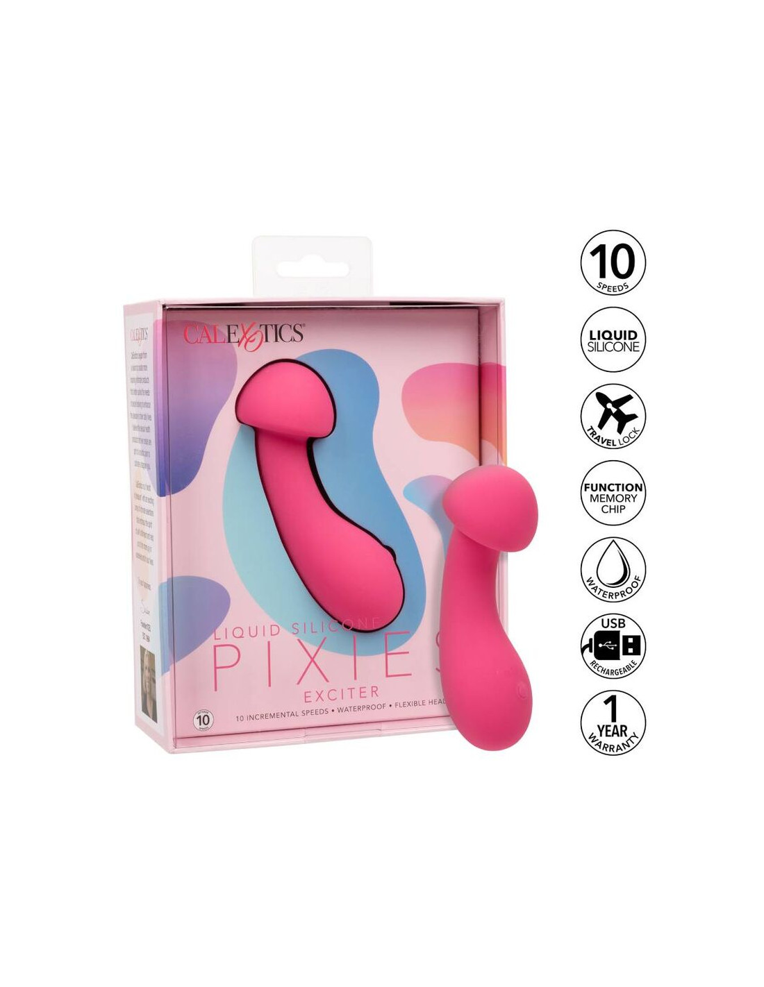 El excitador de Pixies Liquid Silicone está diseñado para ofrecer una sensación de sacudida de rodilla a sus puntos de placer favoritos. La cabeza flexible juguetona, el diseño de doble cara y las 10 velocidades emocionantes de vibraciones hacen que este sea el compañero de viaje perfecto. El masajeador curvo se ajusta en su mano para permitirle entregar tentalización precisa y emocionar con vibraciones contorneadas. Obtenga juguetón con cada aumento de las 10 velocidades incrementales de vibración con el botón de control de fácil toque. Control sin esfuerzo El placer puro con un botón de silicona de fácil toque y mantenga presionada durante 3 segundos para encenderse o desactivarse. La silicona líquida ultra pluscada y la cabeza única flexible son excelentes para explorar puntos dulces sensuales y puntos de placer íntimos con facilidad. Con una forma suave, punta de bombillas y superficie flexible, podrá disfrutar de vibraciones emocionantes desde cualquier ángulo que desee. Use el control suave de un solo botón para disfrutar de hasta 110 minutos de placer vibrante. Cargue su pasión en solo 1,5 horas conectando el cable USB proporcionado al puerto de carga de auto-selección en la base del masajeador. El tamaño discreto del masajeador delgado lo convierte en el compañero de viaje perfecto, lo que le permite adoptar el placer radiante donde sea que sus fantasías lo lleven .