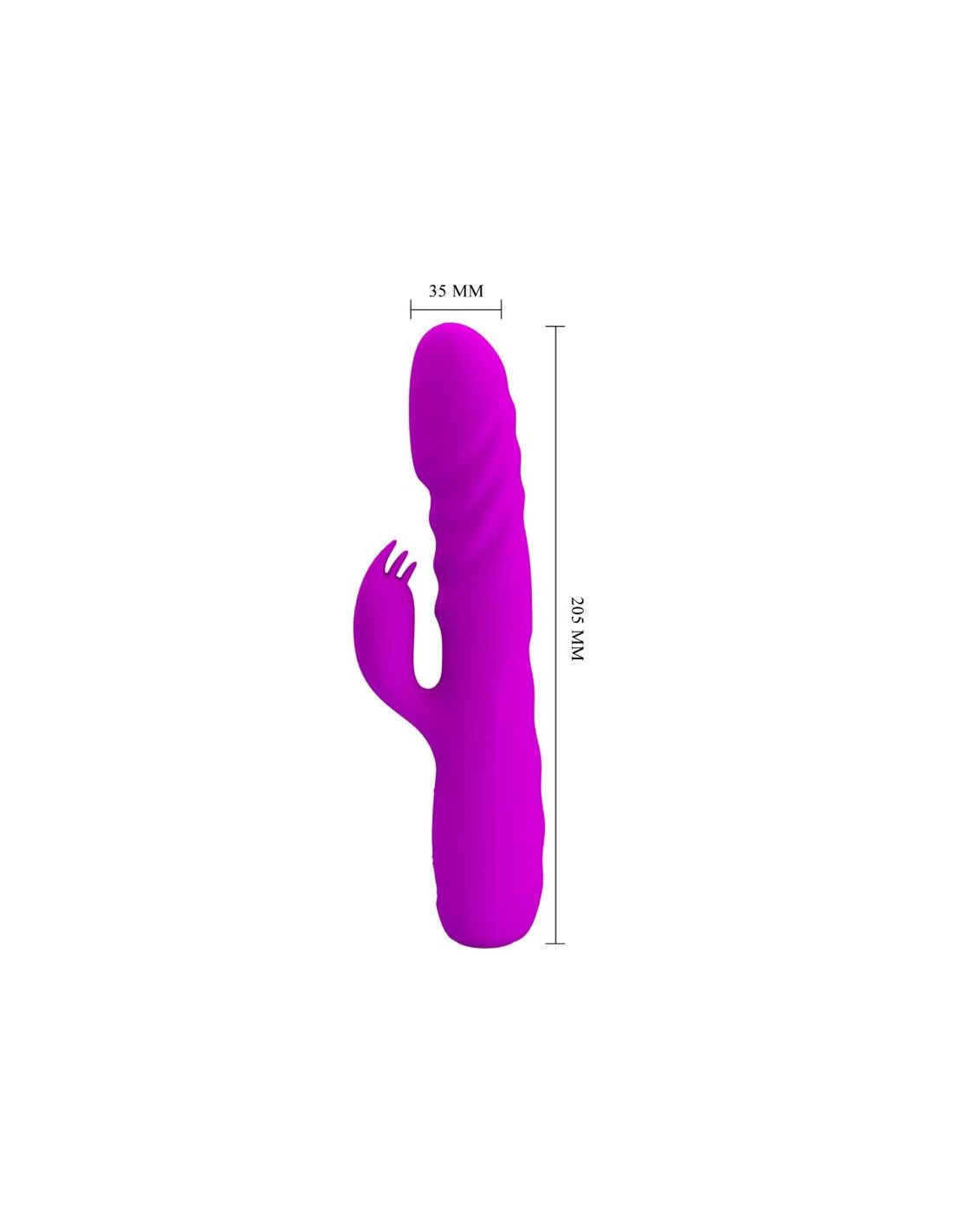 Disfrute de la auténtica experiencia de penetración y más allá con el vibrador de conejo de empuje de 4 funciones pretty love. Este abundante conejito combina la icónica estimulación dual del vibrador de conejo con la activación del punto G y las cosquillas en el clítoris. Aprieta el pulsador para personalizar tu estimulación con 4 increíbles patrones de rotación y empuje para elegir. Mientras experimentas placer interno desde el eje, las orejas de conejo unidas se concentran en tu clítoris y brindan una estimulación espectacular una vez que se activa el vibrador multifunción. Cuando se esté agotando, simplemente conecta el cable de carga USB a tu vibrador para la próxima vez que necesites un dulce alivio.