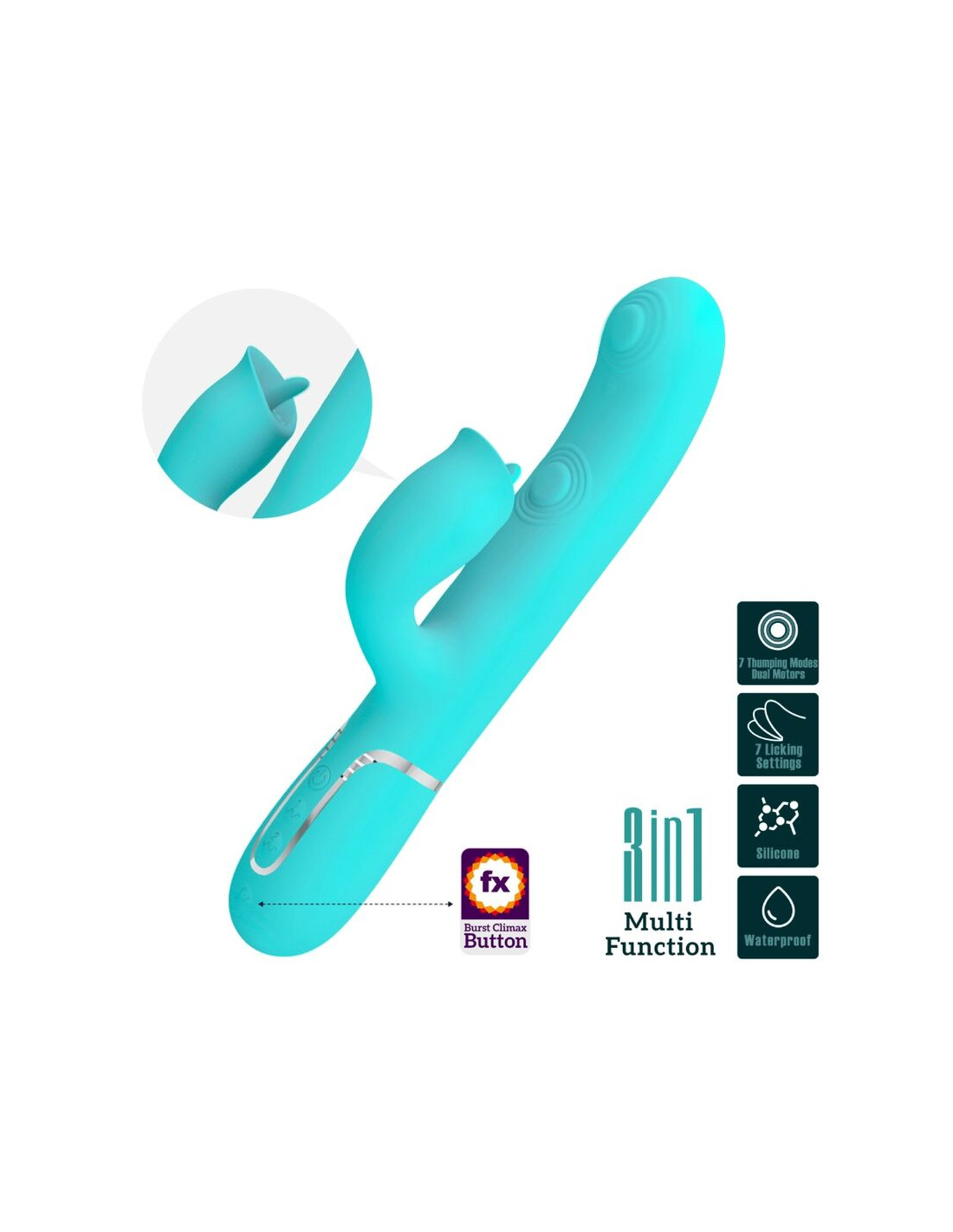 PRETTY LOVE - VIBRADOR RABBIT CON LICKING VERDE AGUA