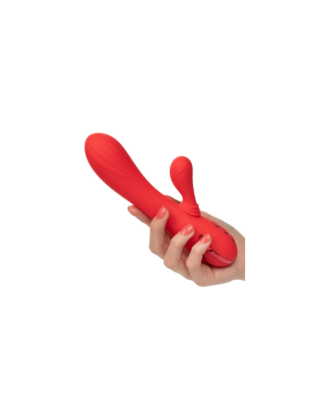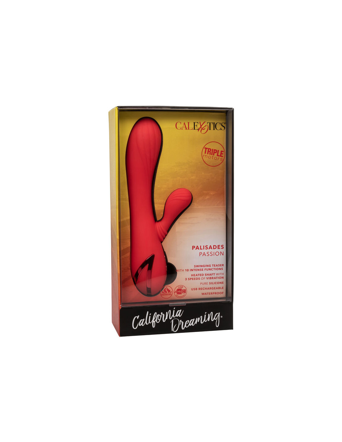 Entrégate a tus fantasías más salvajes y siente cómo sube el calor con el California Dreaming Palisades Passion al rojo vivo. Experimente el placer como nunca antes con el teaser oscilante único y las 3 velocidades de vibración del eje.