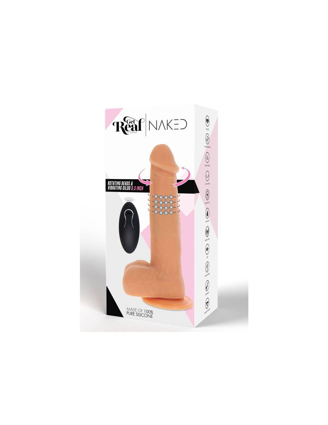 Este dildo de estimulación Vibrating and Beads de Get Real Naked tiene una apariencia muy realista y proporciona estimulación de otro nivel con sus perlas giratorias y vibrantes.