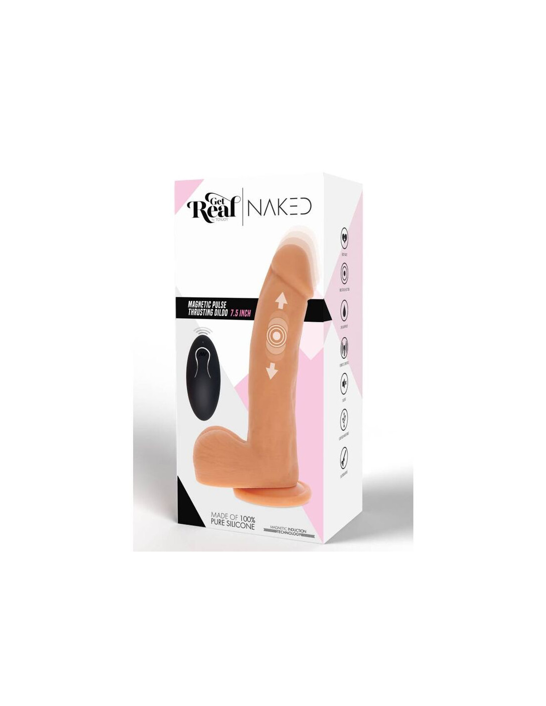 Este consolador de primera calidad de Get Real Naked está hecha de silicona de alta calidad, se siente muy realista y brinda una experiencia real con su exclusivo movimiento de empuje magnético pulsante.