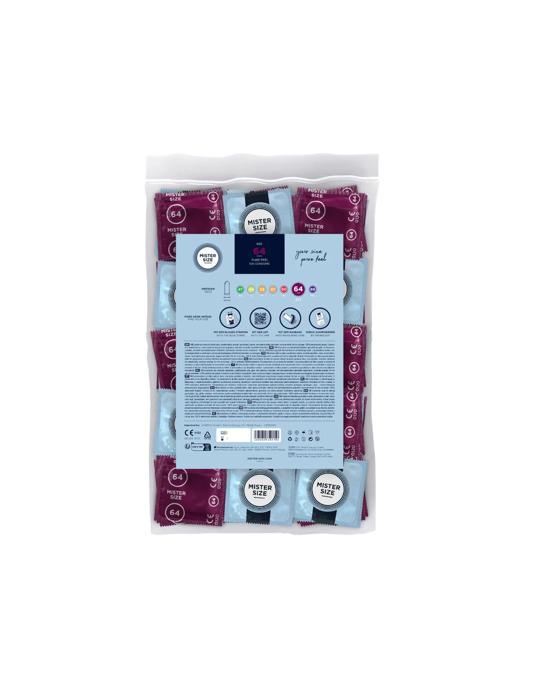 Con MISTER SIZE 64 tienes el condón que te proporciona una sensación agradable en todos los sentidos. ¡Los pellizcos, los pellizcos y la sensación de que te están ahogando la virilidad son cosa del pasado! A partir de ahora, comienza el puro placer. Justo antes de hacer el amor, se produce una maravillosa unión al colocarte fácilmente el condón en tu pene fuerte y robusto, una unión que generará maravillosos momentos de placer sensual. Ajuste fácil y perfecto con tu talla de condón personal No importa lo que haya sucedido en el pasado, ¡un condón siempre puede y debe ajustarse perfectamente! Con tu talla personal, tu condón MISTER SIZE abraza cálidamente tu pene como una segunda piel y hace posible una sensación natural. Ahora puedes relajarte y finalmente dejarte llevar por completo durante el sexo.