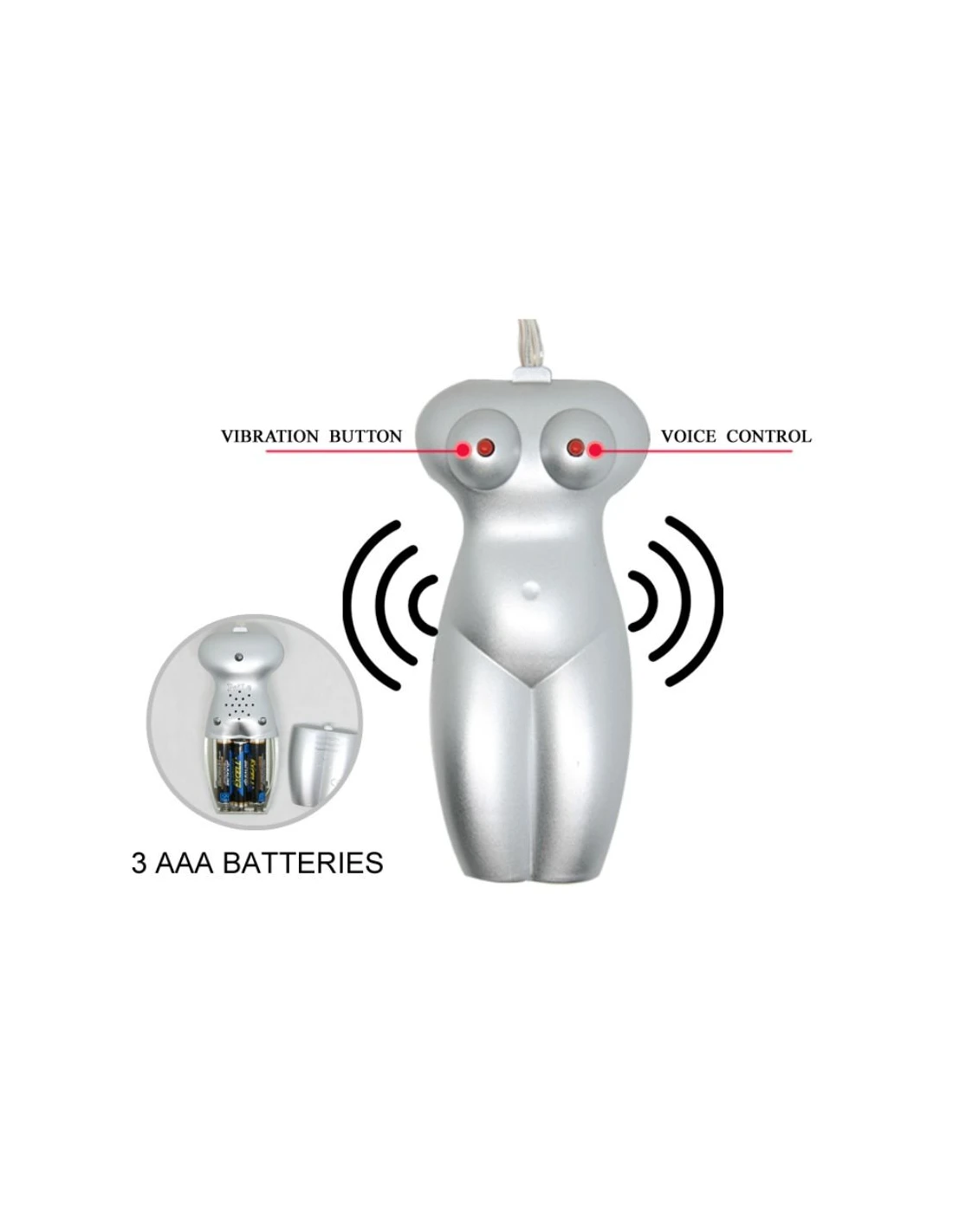 Réplica perfecta de una sensual vagina y ano a tamaño reducido, de una calidad insuperable, con tacto realístico. Además, para mayor placer incorpora dos potentes balas vibradoras y sistema de voz que se controlan con su mando de exclusivo y original diseño.
