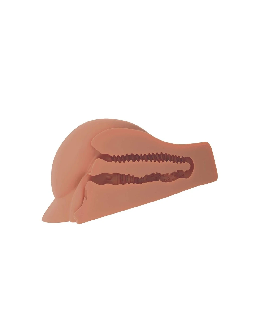 Sus grandes nalgas redondas son perfectas para apretar y masajear, mientras que sus dos agujeros apretados están llenos de protuberancias de placer que fueron diseñadas para masajear cada centímetro de tu eje. Cada hoyo presenta un patrón diferente para brindarle la experiencia realista que ha estado anhelando.