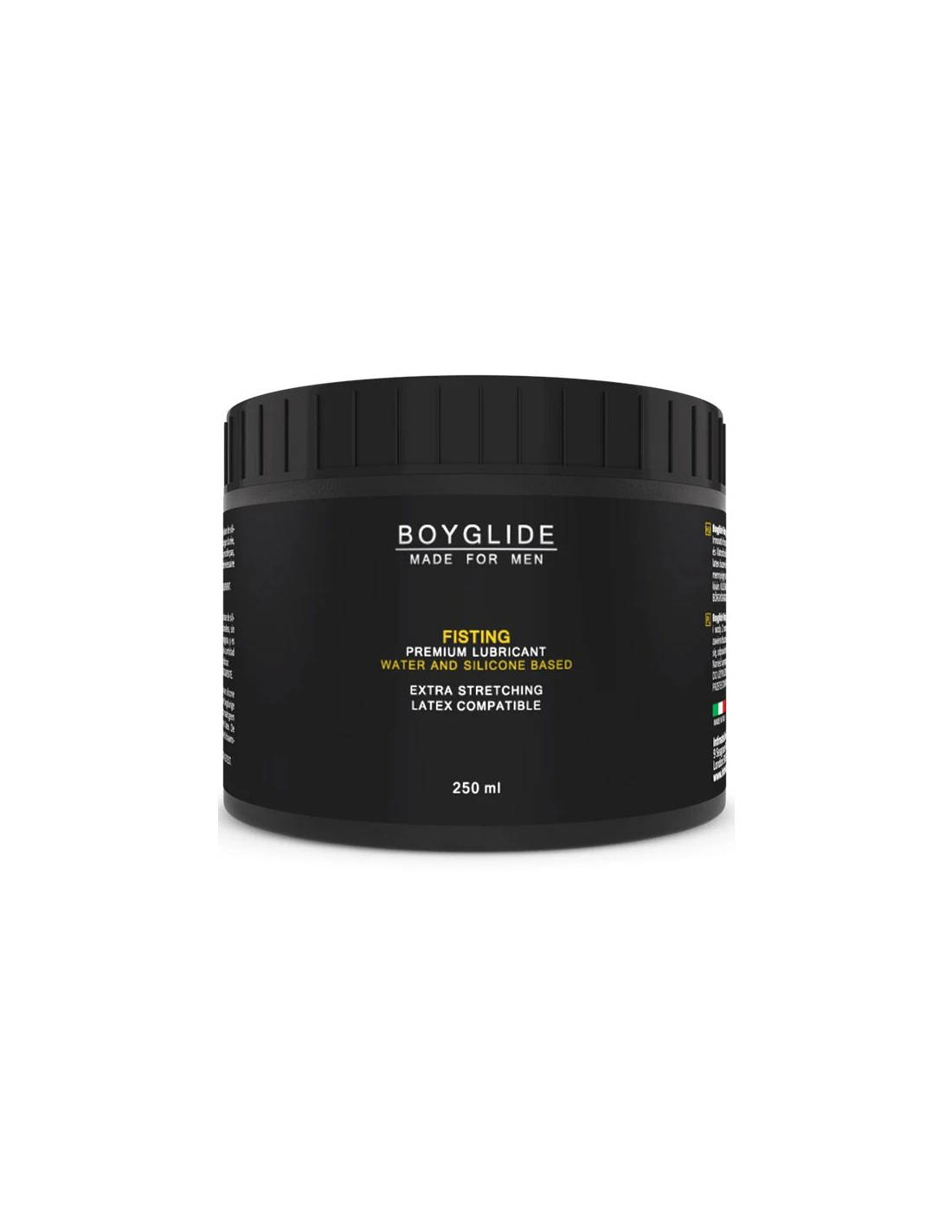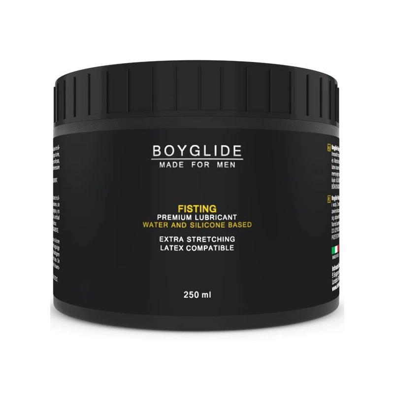 Boyglide Fisting es un lubricante íntimo a base de agua y silicona diseñado y formulado para la piel masculina. Creado para garantizar la suavidad y la comodidad prolongada, garantiza una excelente lubricación durante las relaciones sexuales íntimas. Fórmula exclusiva para el coito anal, el fisting y el puño.