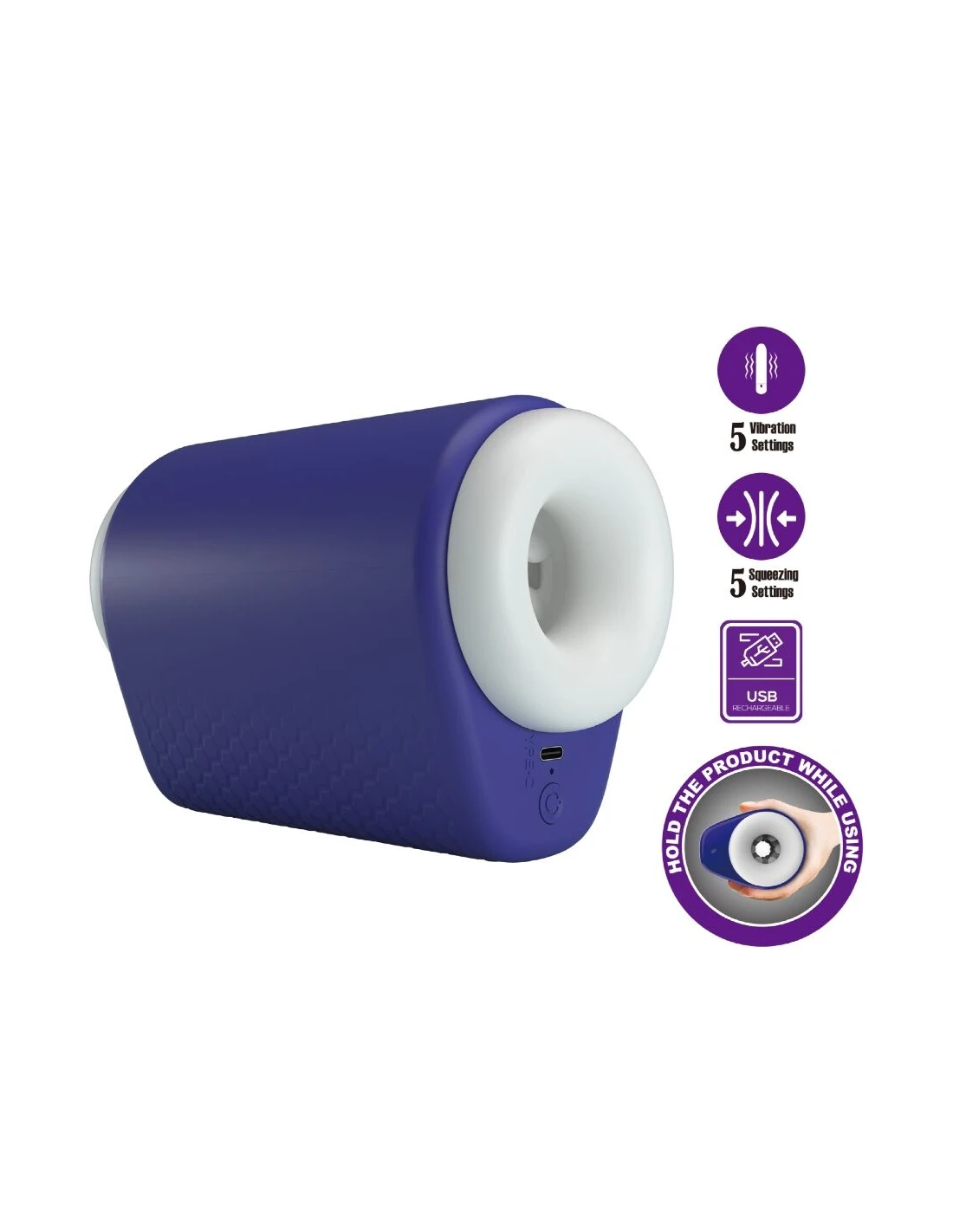 Disfruta de un placer profundo y satisfactorio con esta copa masturbadora con vibración de varias velocidades. Este fantástico juguete masculino te brindará una experiencia mucho más de lo habitual, debido a su exclusivo diseño de sujeción, las copas de ambos lados se pueden apretar manualmente para un mayor placer. Y los puntos de entrada ultra realistas más las mangas internas acanaladas y estriadas hacen que la experiencia de penetración sea perfecta, mientras que el diseño de vibración de varias velocidades te brinda las máximas sensaciones. Disfruta del canal interior texturizado hasta alcanzar una intensa liberación orgásmica.