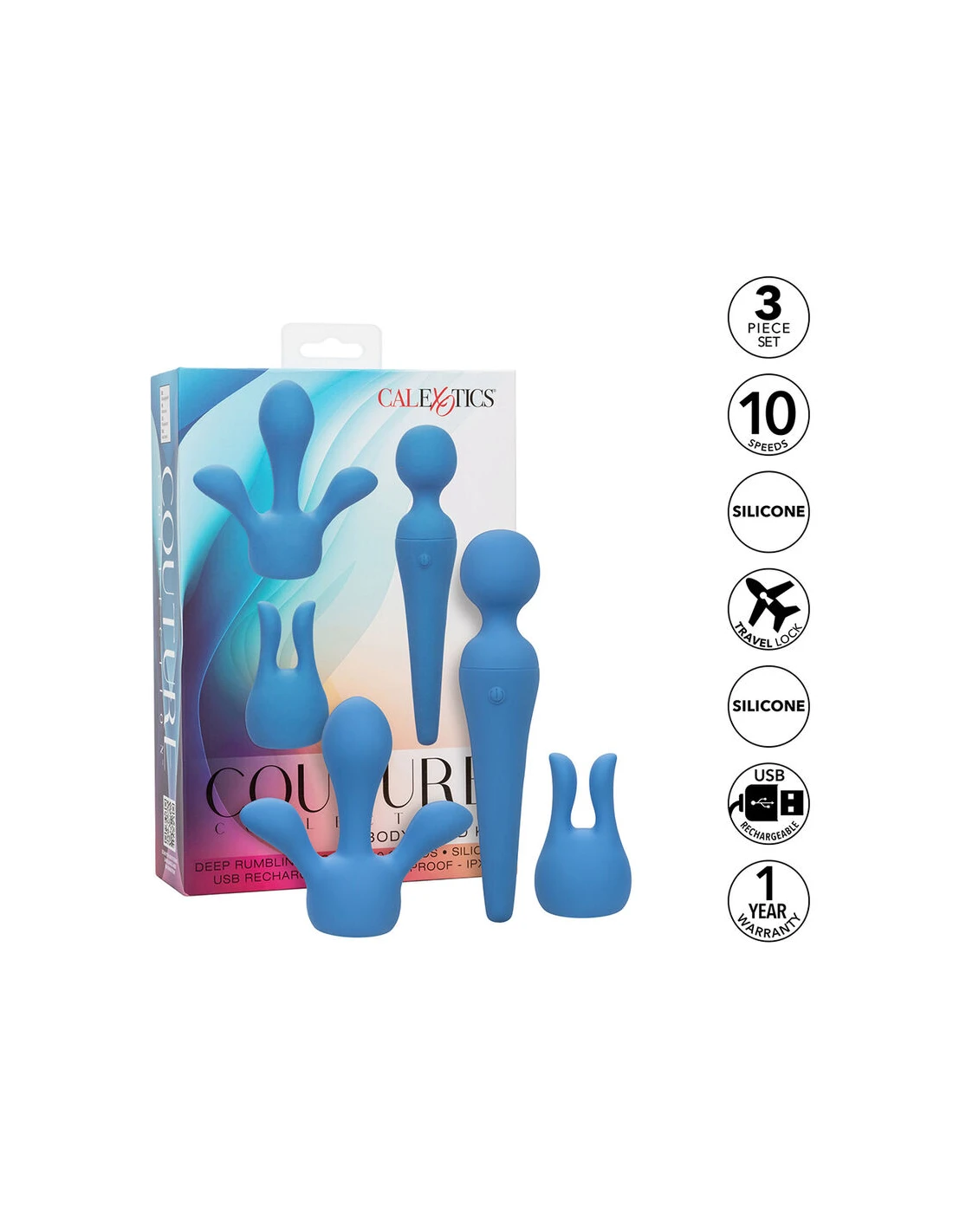 CALEXOTICS - COUTURE KIT VIBRADOR WAND 10 VIBRACIONES AZUL