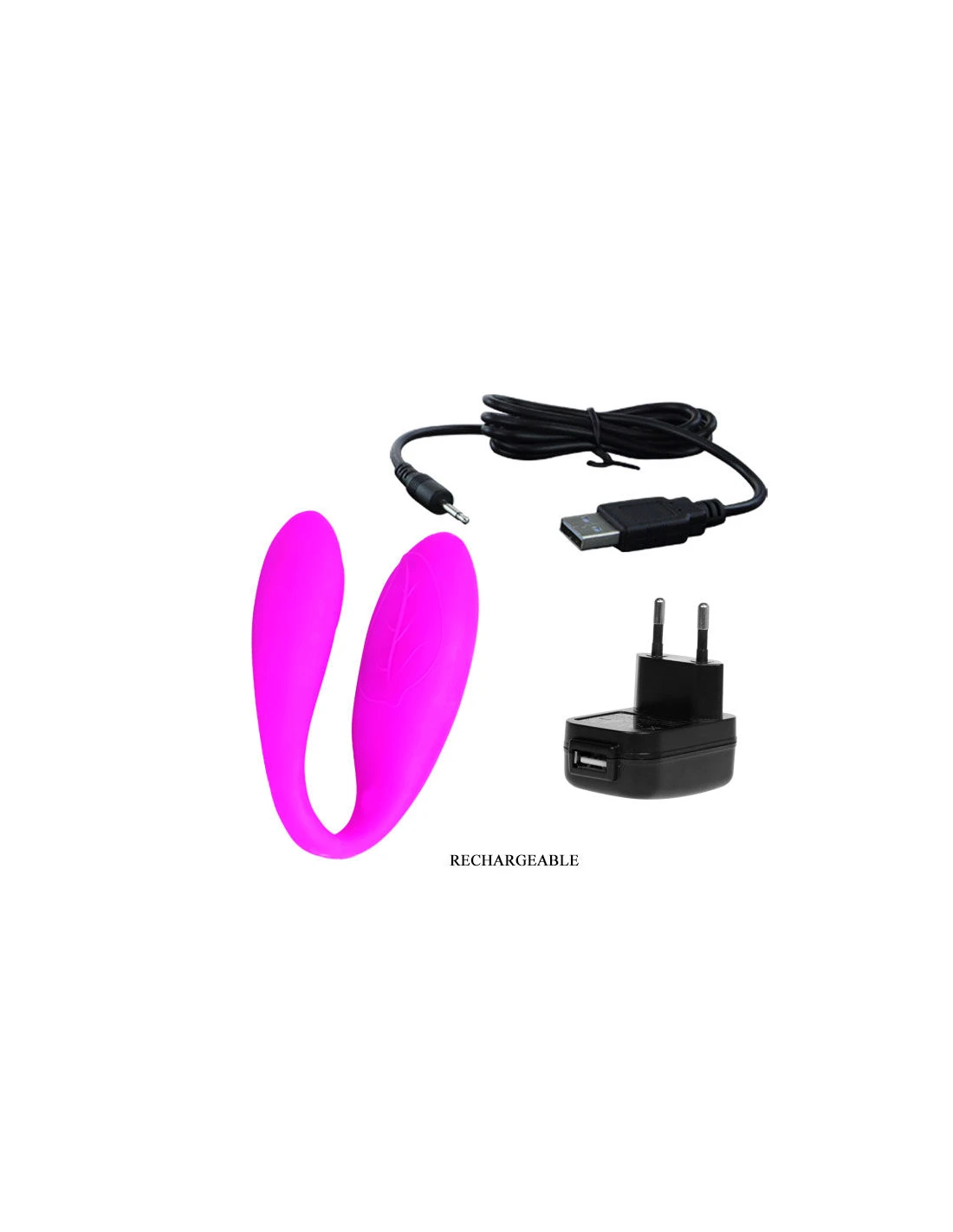 - Este vibrador ergonómico en forma de U es ideal para utilizar en pareja , con distintos modos de pulsación que hacen un total de 30funciones de vibración, dos motores independientes y totalmente flexible.