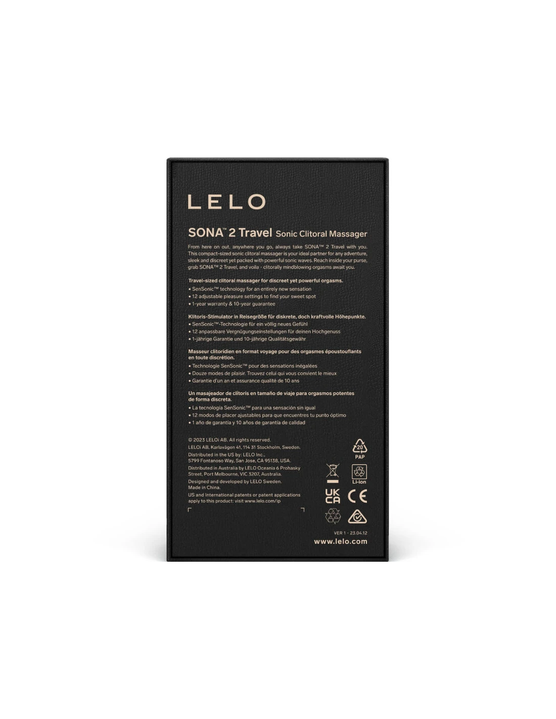 SONA™ 2 Travel es la versión compacta de nuestro superventas SONA™ 2. Ha sido desarrollado para mejorar la experiencia íntima del usuario con su diseño elegante, discreto y compacto. Usa la exclusiva tecnología SenSonic™ de LELO, que ofrece al clítoris una potente estimulación de ondas sónicas para que acabes increíblemente satisfecha. SONA™ 2 Travel es el compañero perfecto para aquellas que buscan el placer en sus múltiples viajes, ya que te permite acceder fácilmente al orgasmo en todo momento.