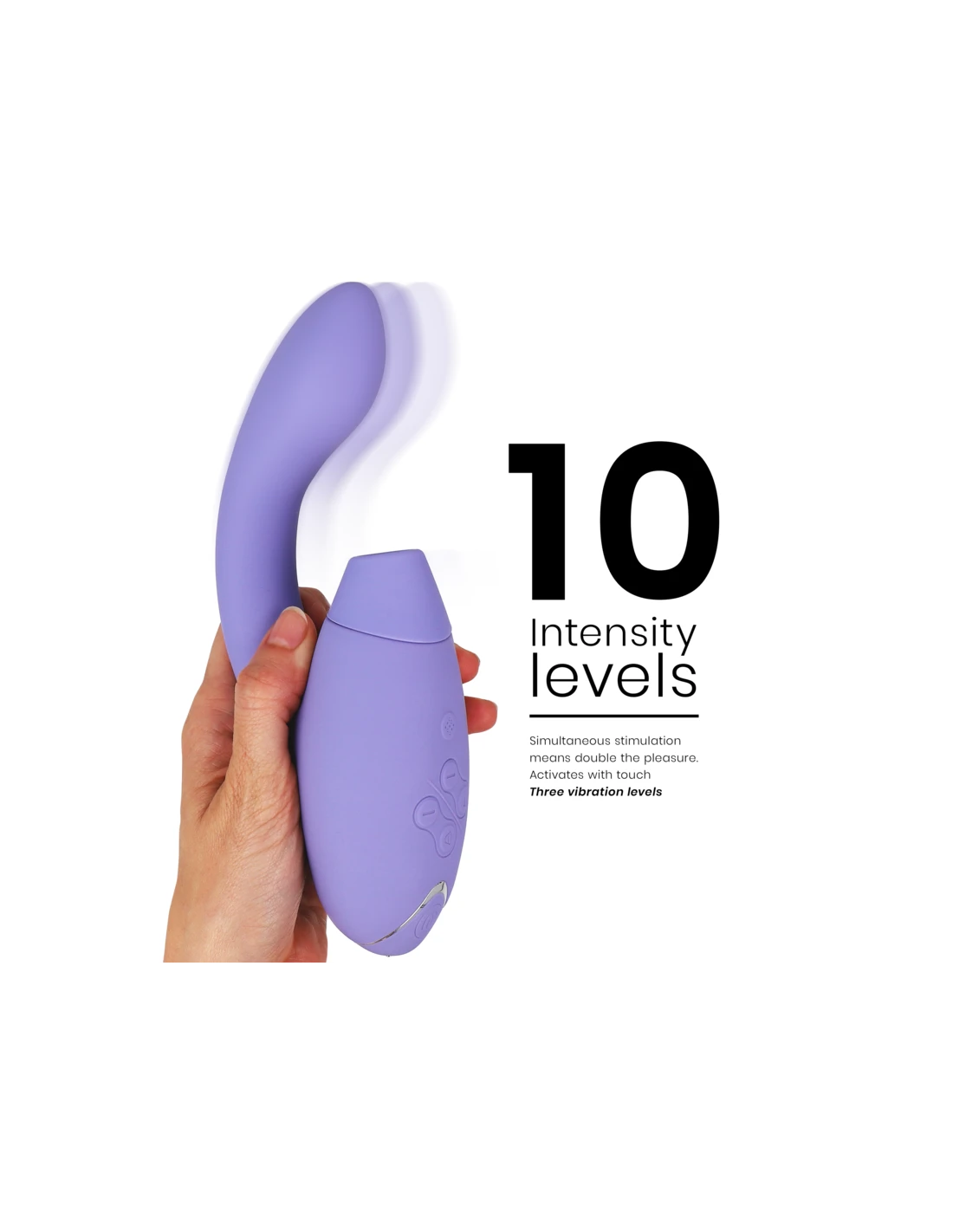 Las vibraciones y las pulsaciones del aire se controlan por separado y de forma sencilla mediante botones suaves al tacto en la parte superior del cabezal del estimulador. Con el modo Smart Silent, el DUO 2 solo se encenderá cuando esté en contacto directo con tu piel, manteniendo aún más silenciosos los ya silenciosos ruidos. Con la función Afterglow, presione el botón de encendido brevemente después del clímax, bajando la intensidad del DUO 2 al nivel 3 para un final relajante. ¡Hecho con silicona segura para niños, el DUO 2 es resistente al agua para que puedas extender el tiempo de juego en el baño o la ducha! Utiliza siempre un lubricante a base de agua con el DUO 2 y recuerda limpiarlo con un limpiador de juguetes antes y después de cada uso. ¡Lleva tus orgasmos al siguiente nivel con el estimulador dual Womanizer DUO 2!