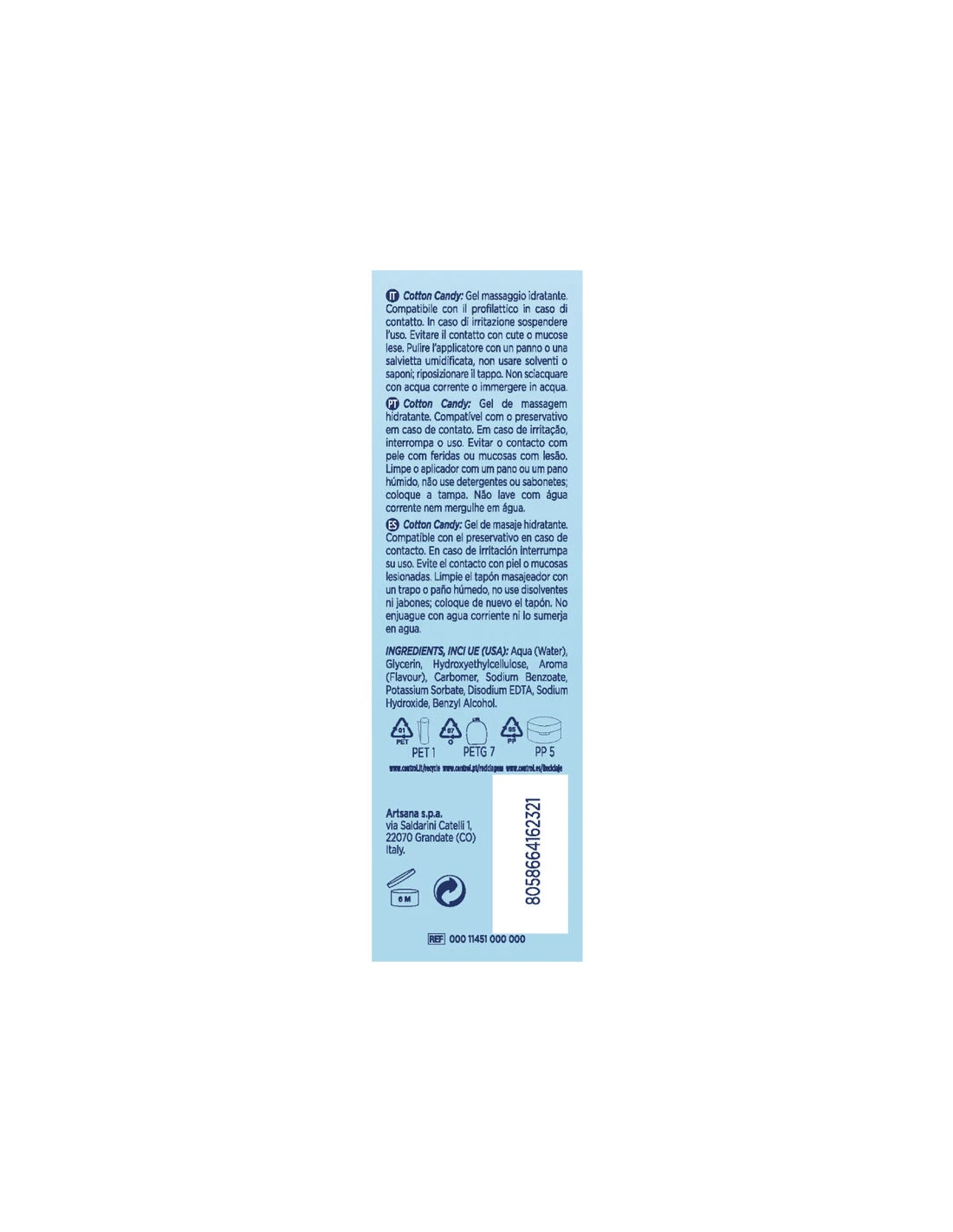 Gel de masaje ultrasensorial al algodón de azúcar. Gracias a su acción masajeante e hidratante al dulce aroma del algodón de azúcar, Cotton Candy envolverá tus momentos íntimos en un inolvidable carrusel de aromas.