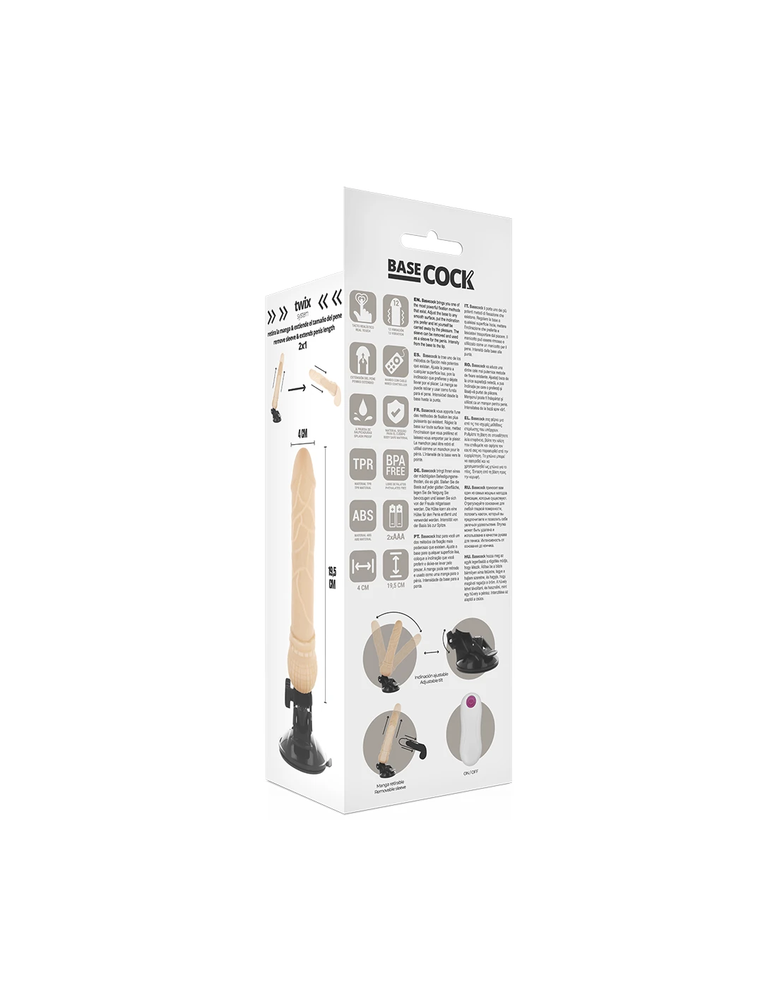 BASECOCK VIBRADOR REALISTICO CONTROL REMOTO NATURAL 195 CM O 4 CM