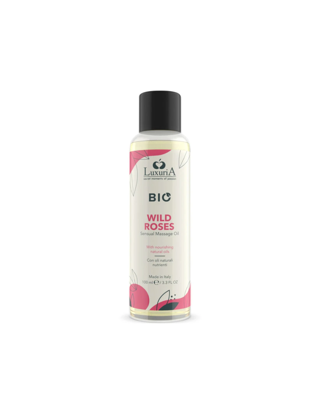 Luxuria BIO Wild Roses es un aceite de masaje de la nueva línea Bio de Luxuria. Su fórmula nutritiva a base de aceites vegetales totalmente naturales y esencias estimulantes refinadas proporciona una hidratación intensa, dejando la piel suave y perfumada. El aceite estimulará tus sentidos con sus notas floreales y de pétalos de rosa que te acompañarán durante todo el masaje.