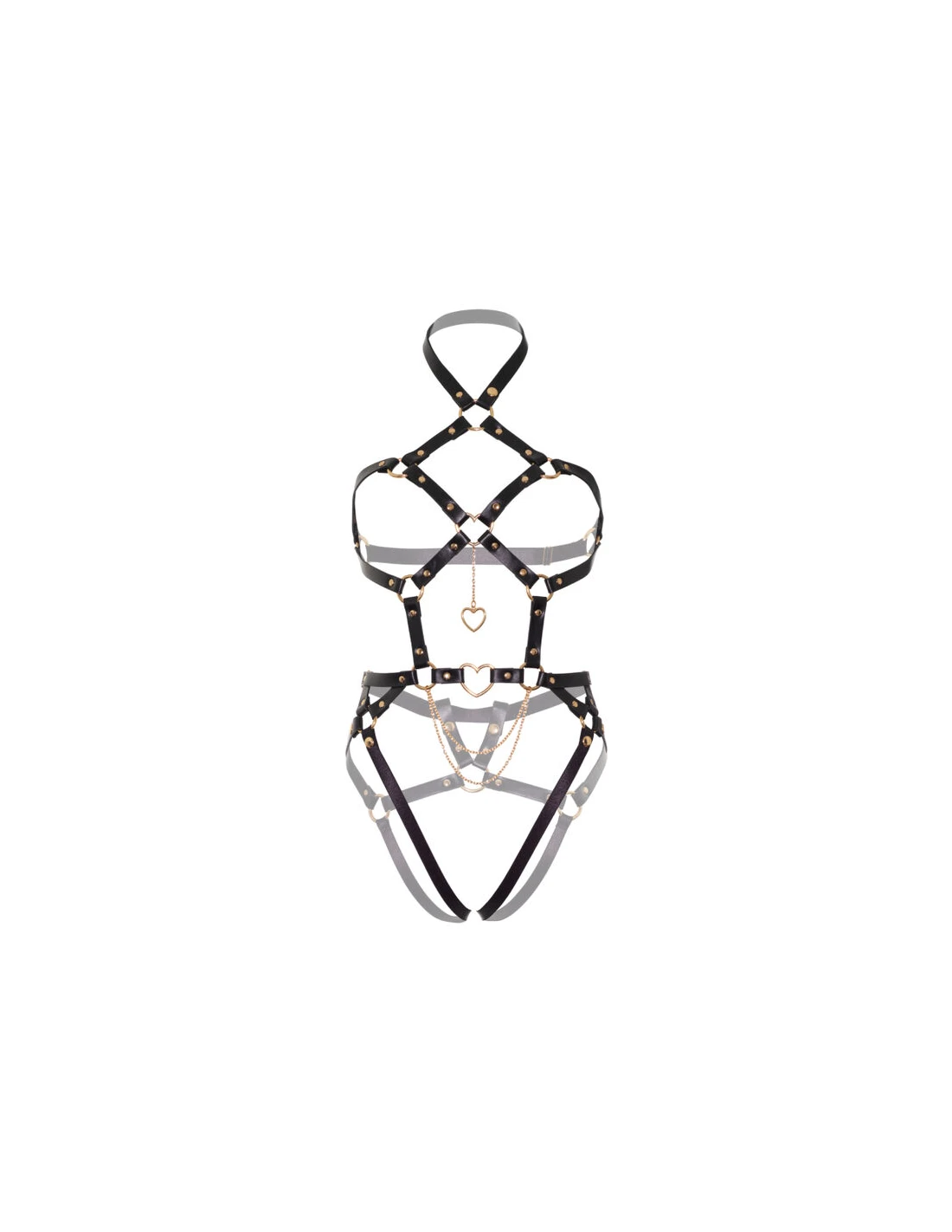 LEG AVENUE - KINK - TEDDY ARNÉS CON ARO DE CORAZÓN TALLA S - NEGRO