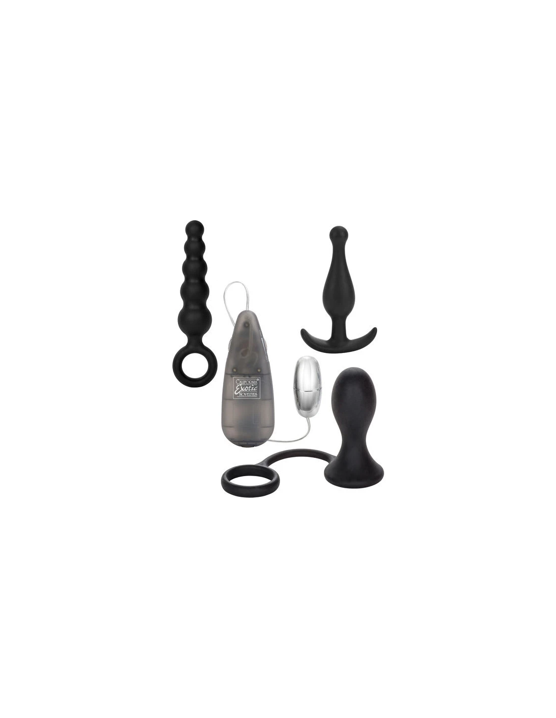 Incluye: Dos plugs anales, un estimulador con distintas velocidades y una sonda de próstata de silicona con anillo de soporte para su fácil extracción.