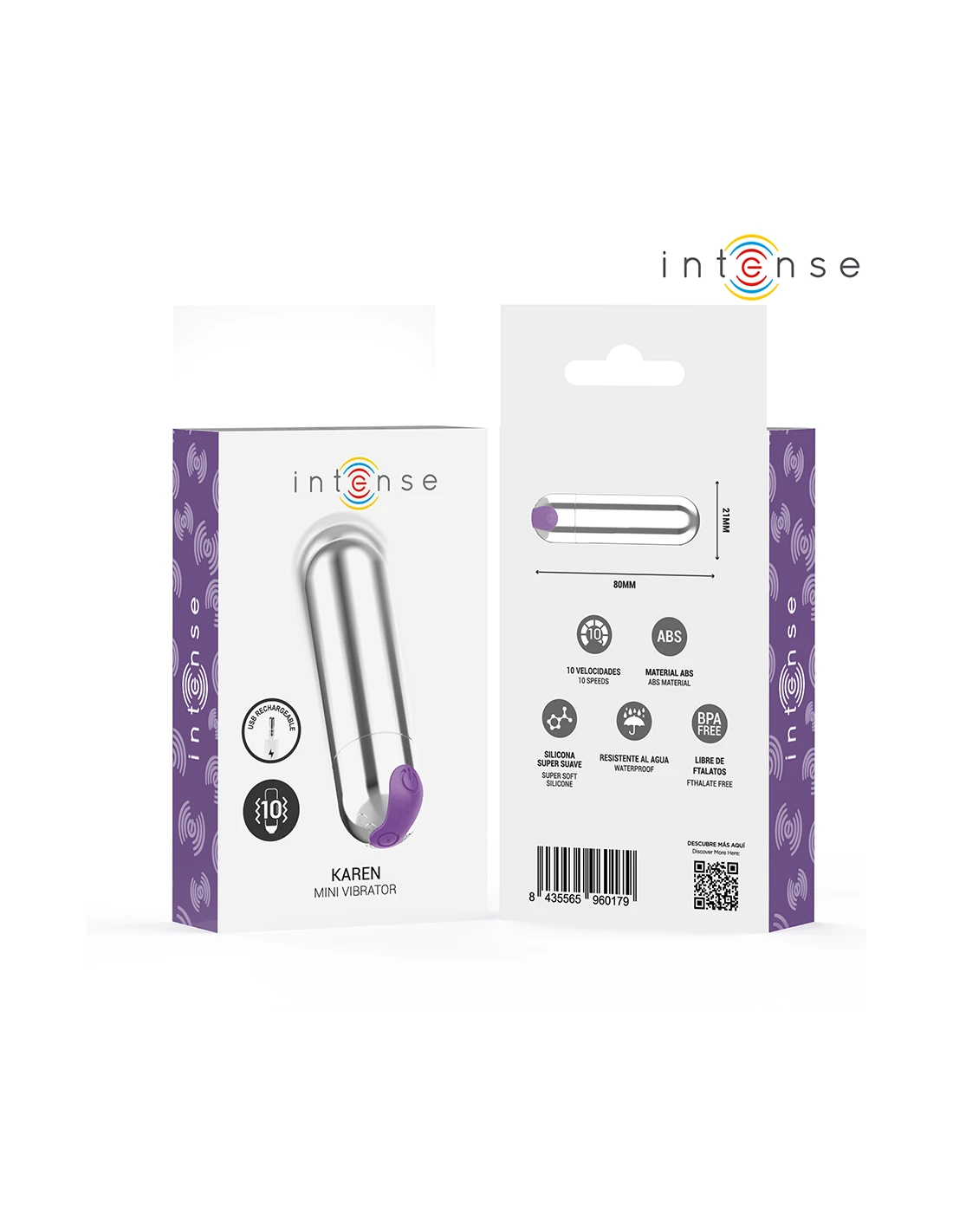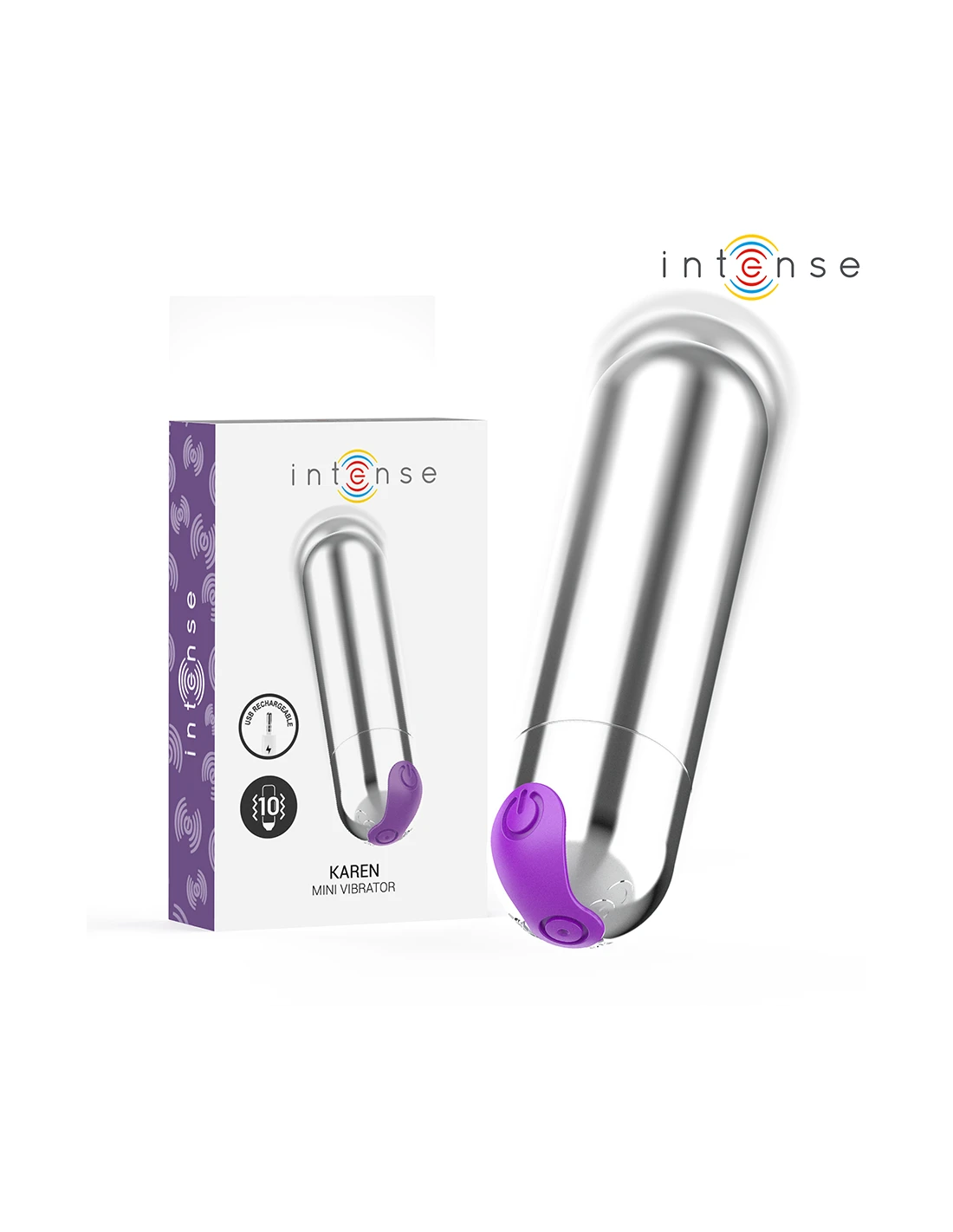 INTENSE KAREN MINI BALA VIBRADORA 10 MODOS RECARGABLE PLATEADO