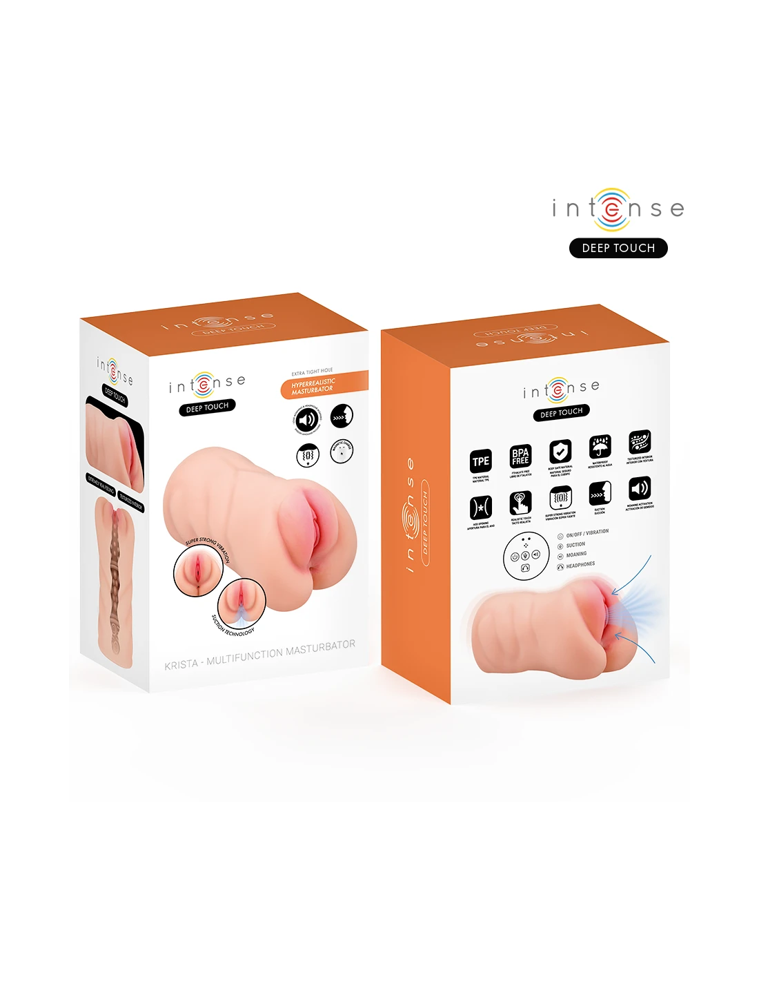 INTENSE DEEP TOUCH - KRISTA MASTURBADOR ANO Y VAGINA CON EFECTO SUCCION, VIBRACION Y VOZ CON CONTROL REMOTO 1.2KG