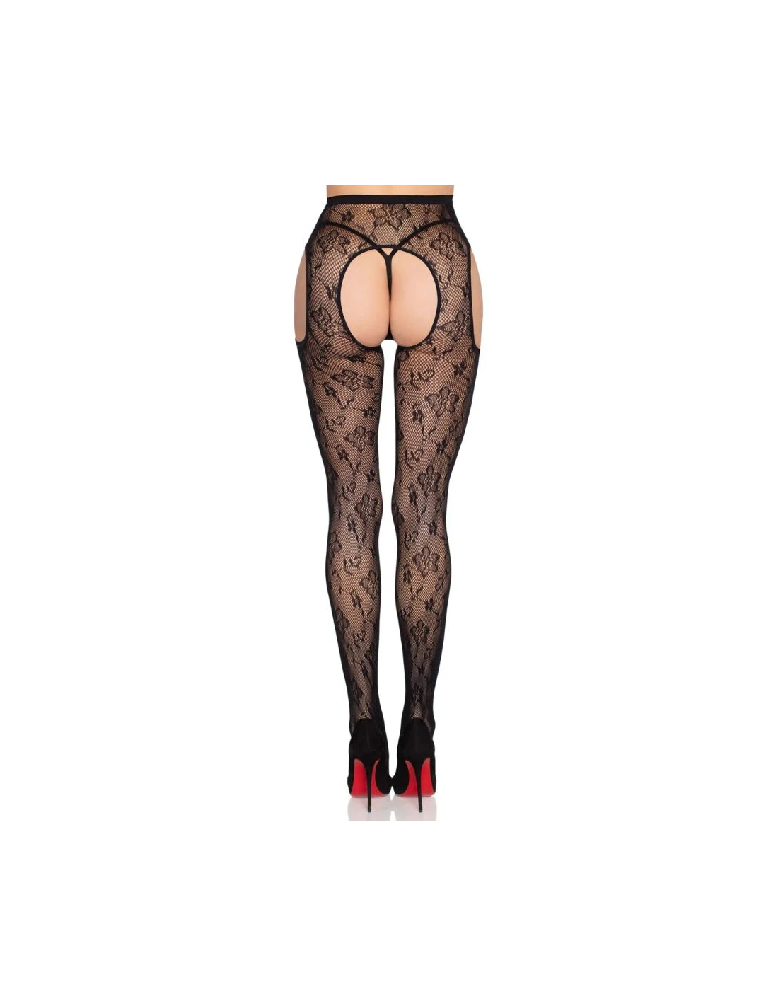 LEG AVENUE - 1967 MEDIAS DE LIGUERO CON RED DE FLORES NEGRO - TALLA ÚNICA