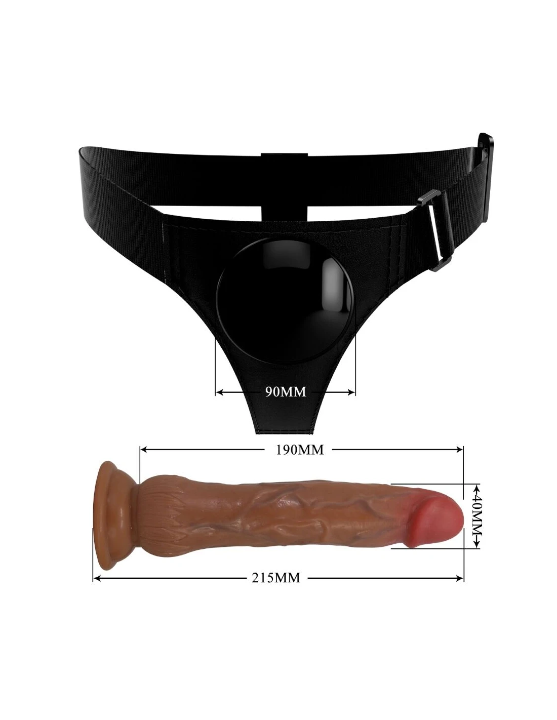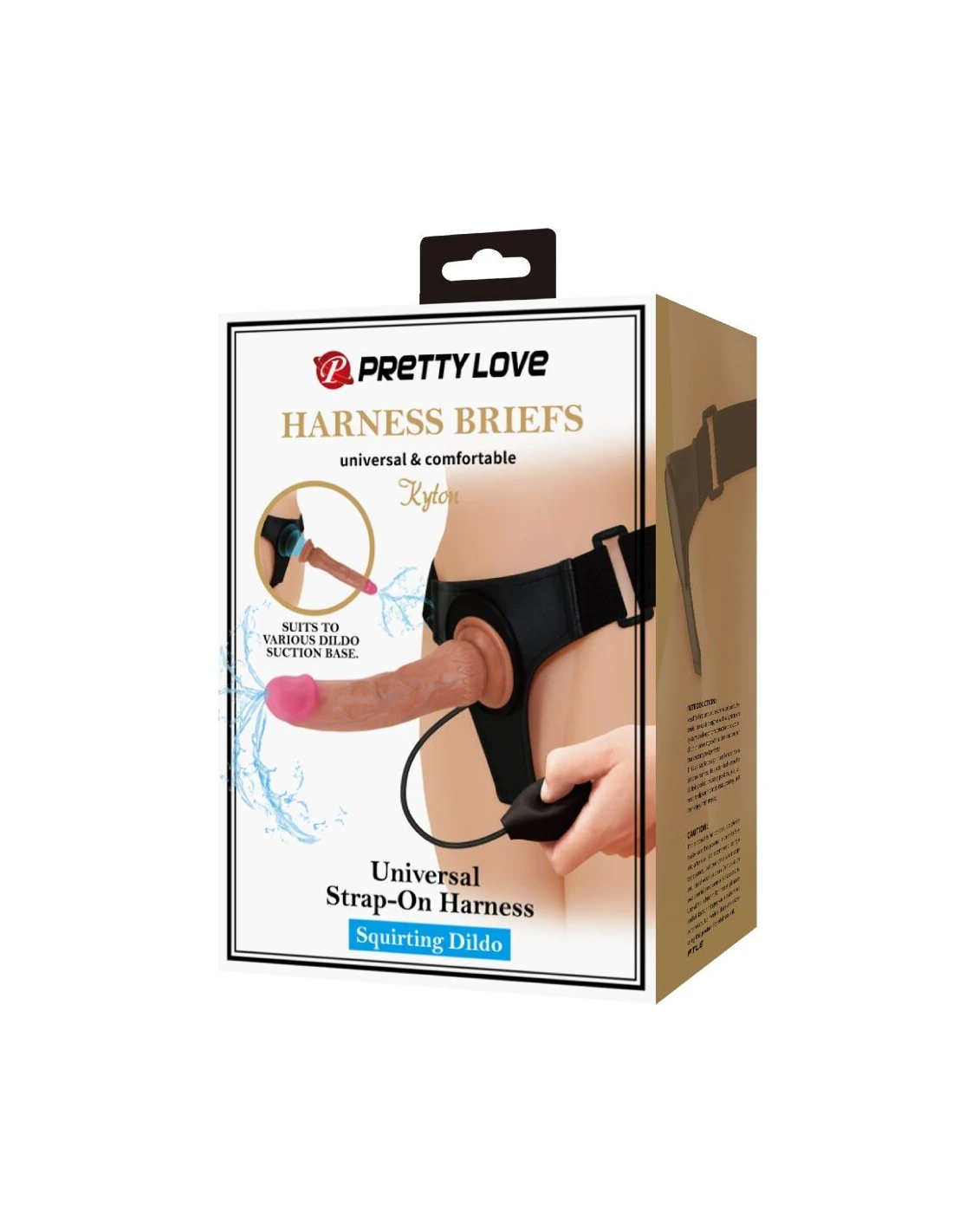 PRETTY LOVE - KYTON HARNESS BRIEFS UNIVERSAL CON DILDO SQUIRTING 19 CM MULATO