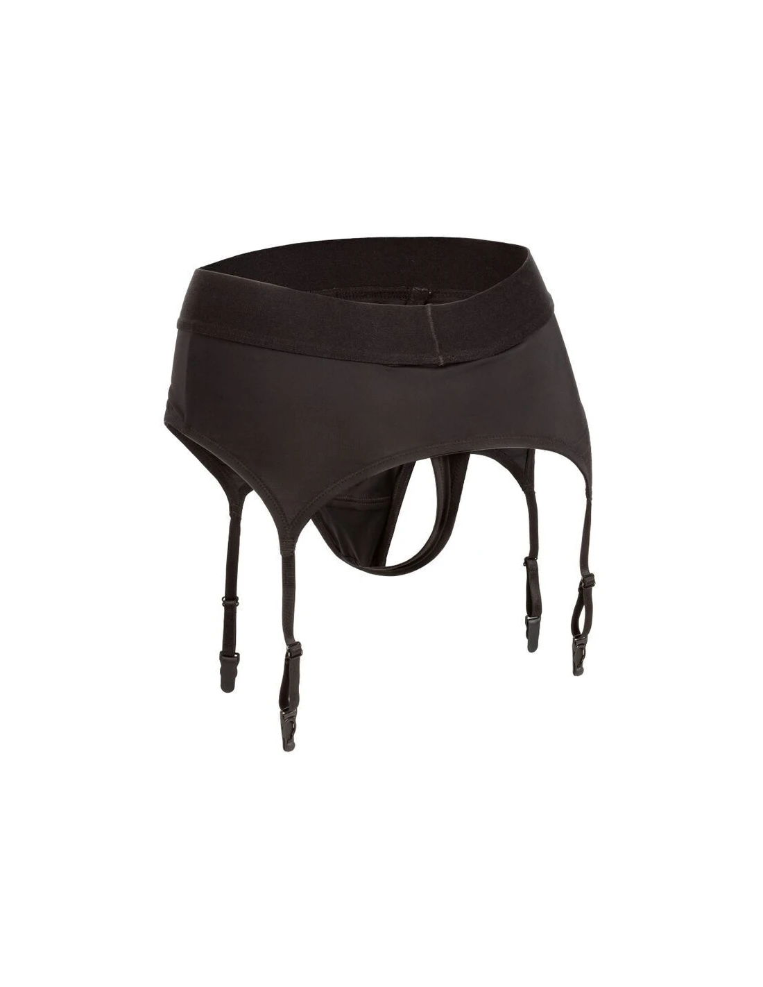 - Forma de tanga con liguero; funciona como un arnés premium