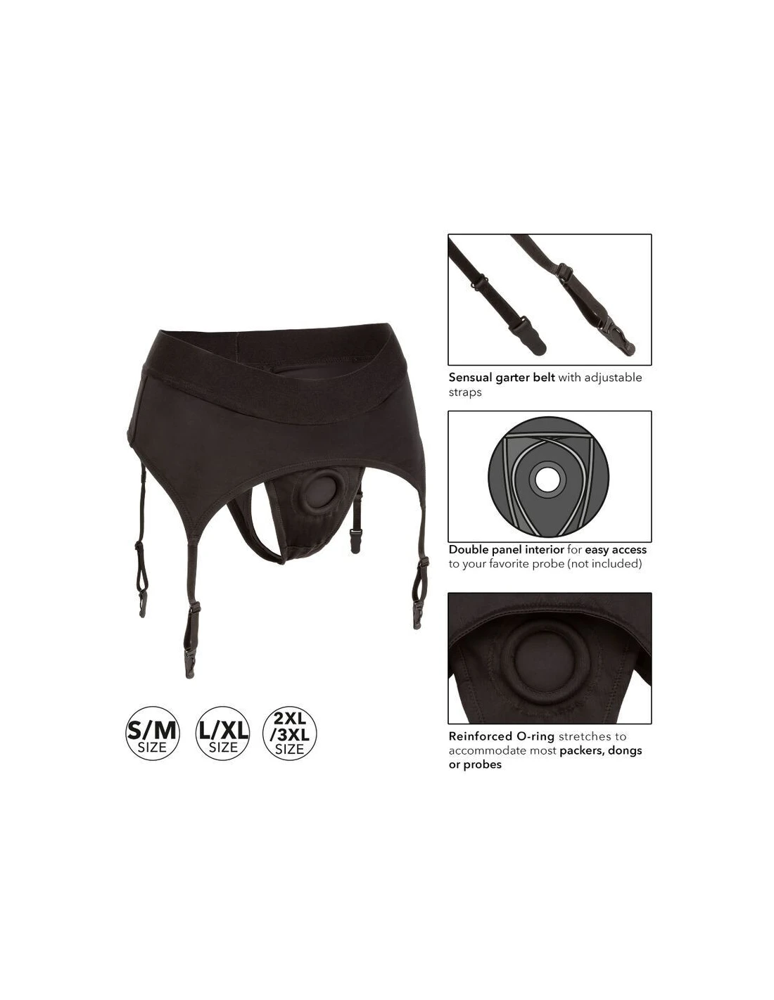 El sensual liguero se completa con correas ajustables para un ajuste sexy pero cómodo. Disfrute del placer hecho para dos con el interior de doble panel.