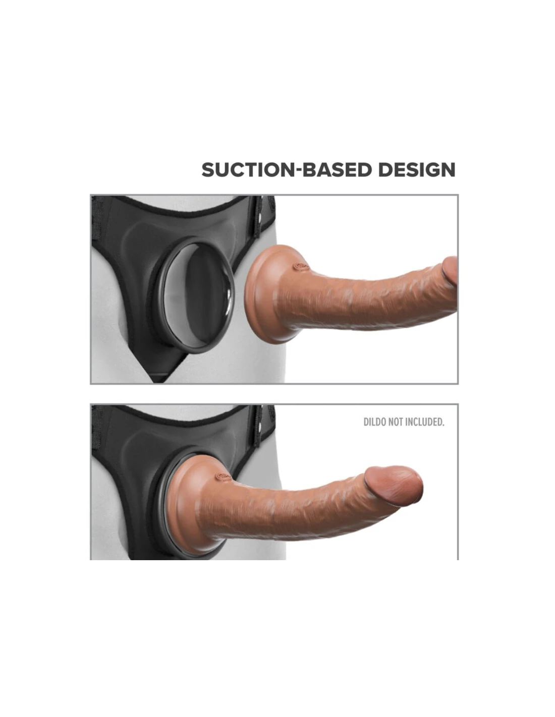 ¡Empuja y juega! Simplemente empuja la ventosa de tu dildo o vibrador favorito contra el acoplamiento de succión cóncavo hasta que TODO el aire entre ellos se libere. La succión crea una unión súper fuerte sin necesidad de anillos o broches.