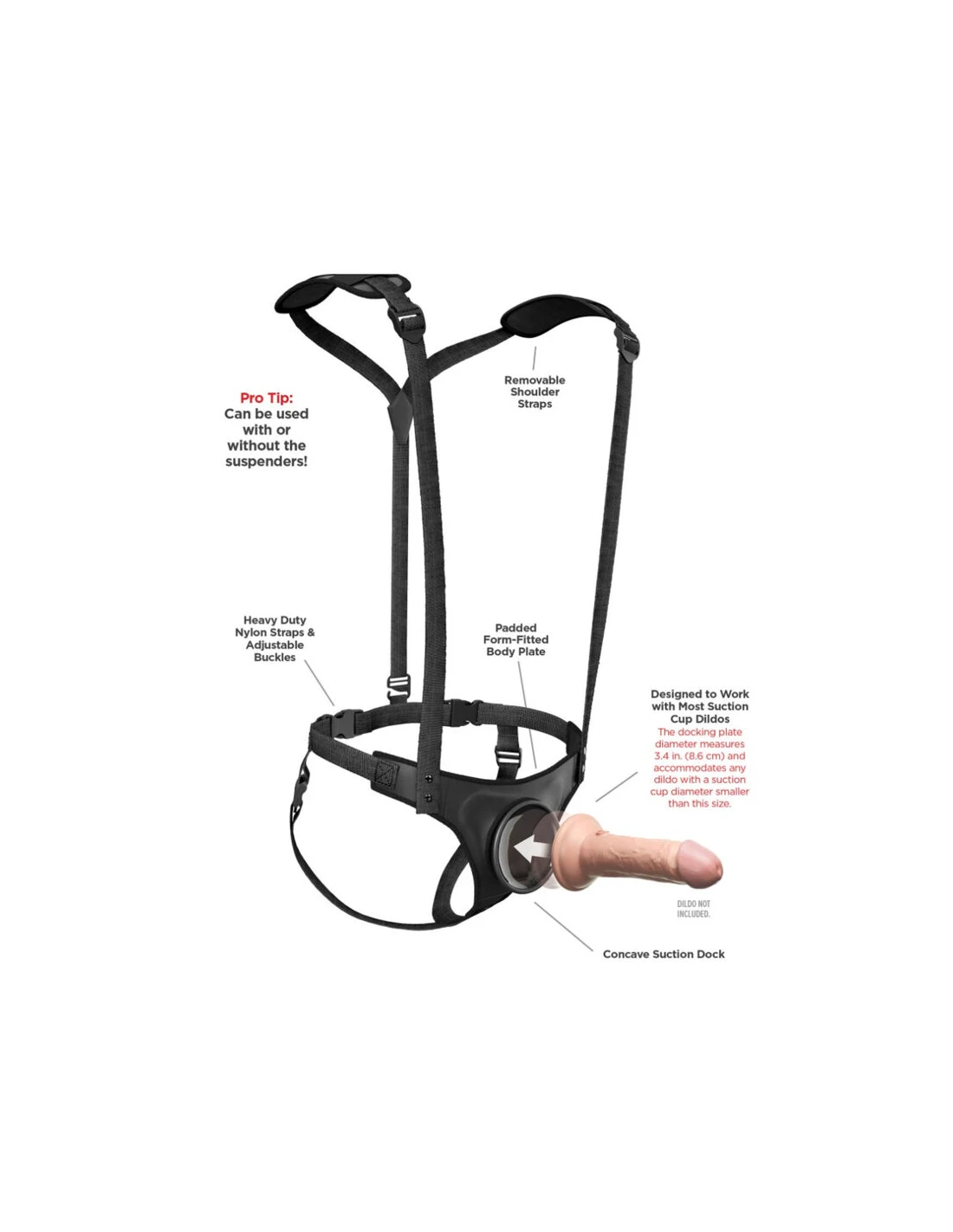 ¡Las bretas para arnés Body Dock patentadas llevan el juego con arnés a un nivel completamente nuevo! No solo son elegantes, sino que también brindan el máximo soporte y comodidad con la placa acolchada de ajuste perfecto al cuerpo, las bretas desmontables, las hebillas ajustables de liberación lateral y las hombreras removibles. ¡Cambiar tu accesorio favorito para arnés nunca ha sido tan rápido ni fácil! Es tan simple como sujetar la ventosa de tu dildo o vibrador favorito a la placa de acoplamiento, mientras las correas de nylon se ajustan fácilmente para adaptarse a la mayoría de las tallas y tipos de cuerpo. Lo mejor de todo es que funciona con la mayoría de los dildos disponibles en el mercado hoy en día, incluidos algunos que quizás ya tengas. ¡Sin anillos. Sin broches. Sin complicaciones!