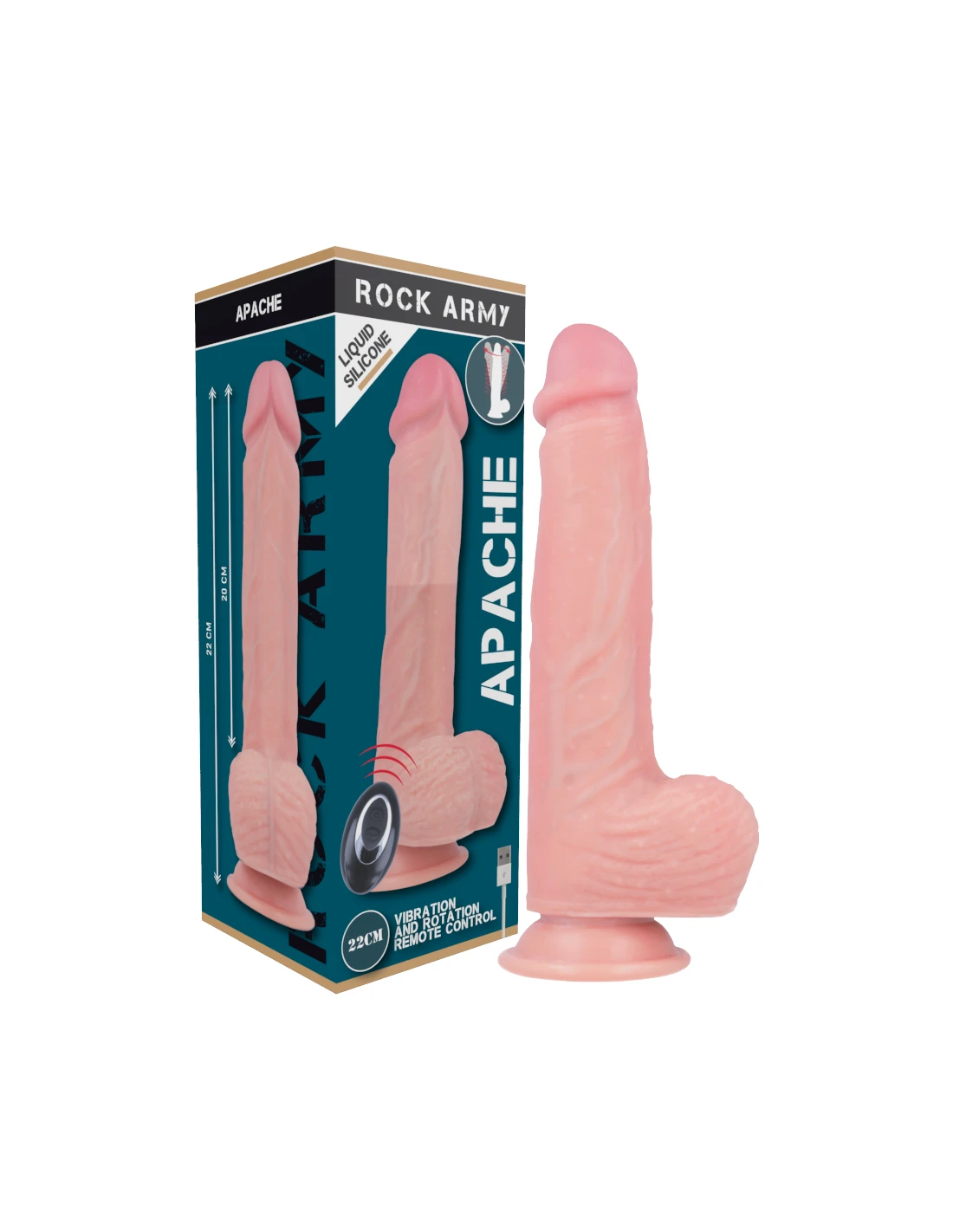 ROCKARMY - APACHE VIBRADOR REALÍSTICO CONTROL REMOTO LIQUID SILICONE 20.5 CM -O- 4.62 CM