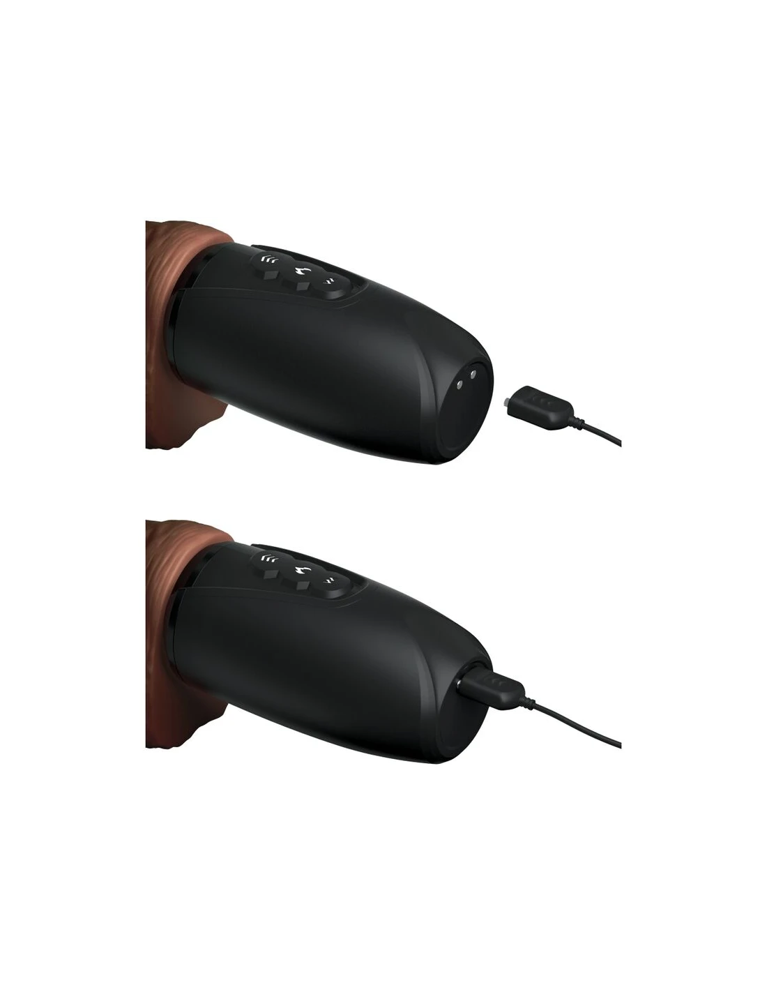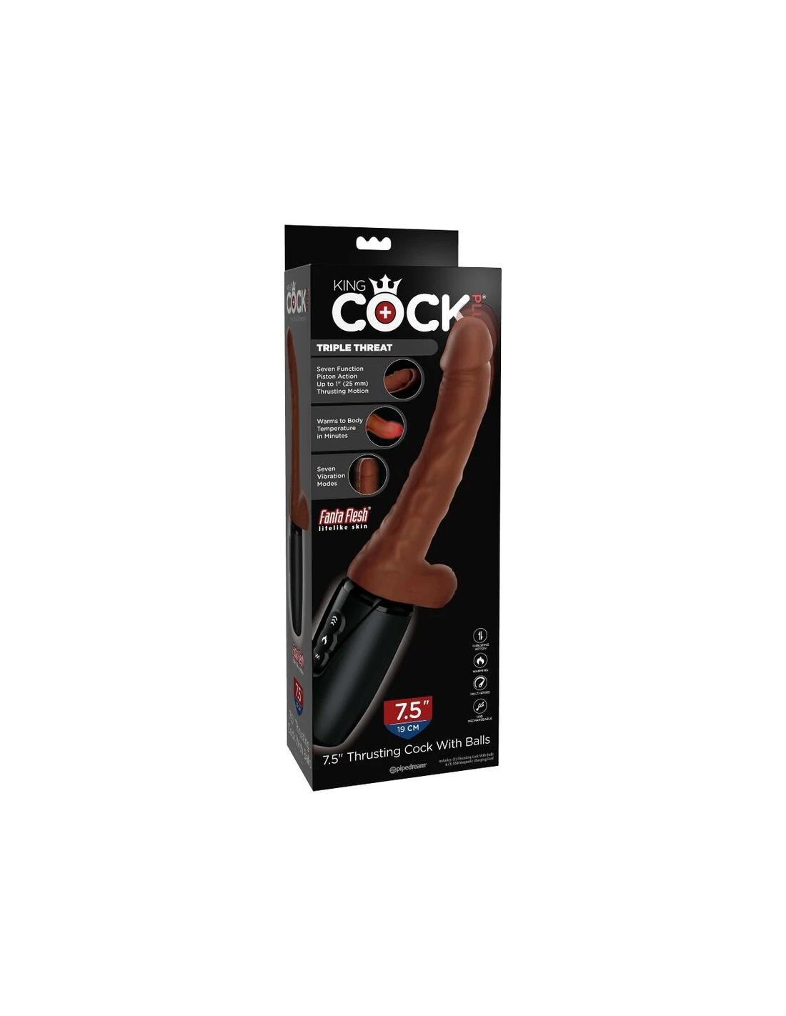 - Modo de calentamiento interno: El King Cock Plus Thrusting Cock tiene una función de calentamiento que eleva el exterior de Fanta Flesh a la temperatura corporal en cuestión de minutos.