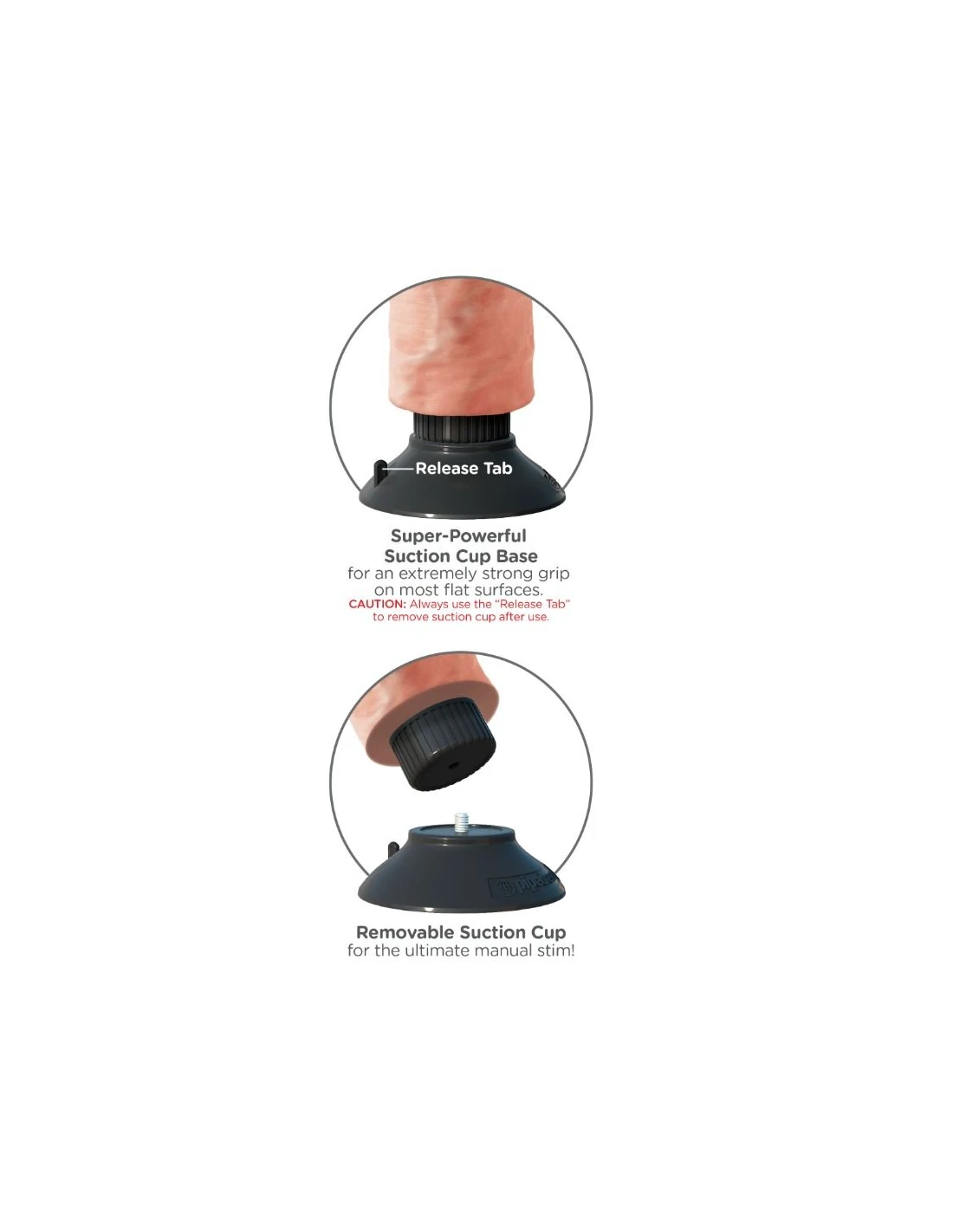Además incorpora una fuerte ventosa para que lo adaptes a cualquier superficie plana o a los arneses King Cock compatibles y son resistentes al agua con lo que podrás usarlos también en la ducha o spa y convertir el tiempo del baño en un tiempo de placer